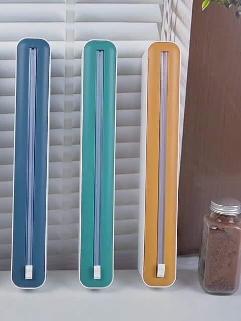 1Pc Kitchen Wrap Cutter, Dual-Sided Sliding Blade Cutting Box, Wall-Mounted With Suction Cup, Abs Material, Suitable For Home And Commercial Use