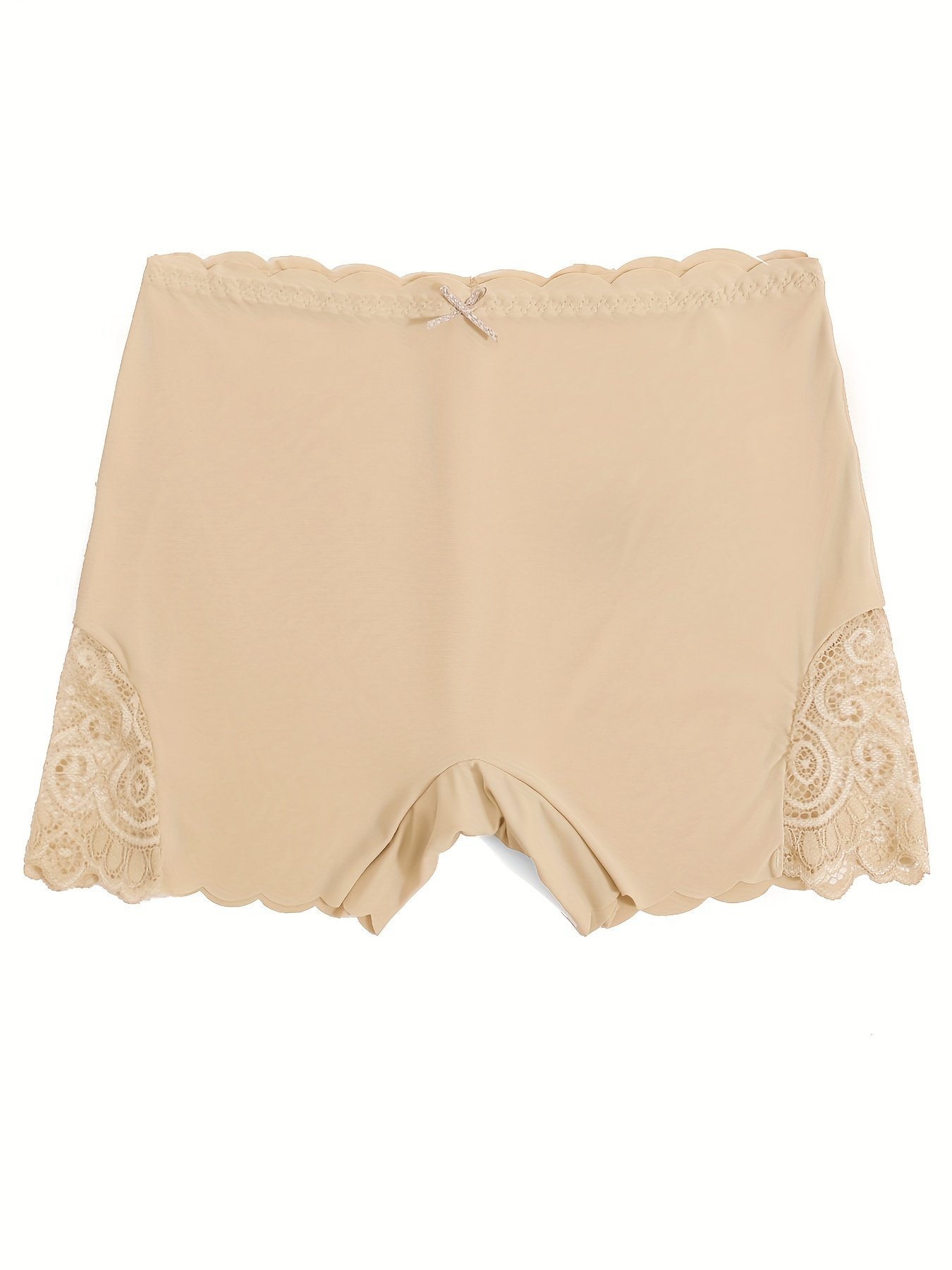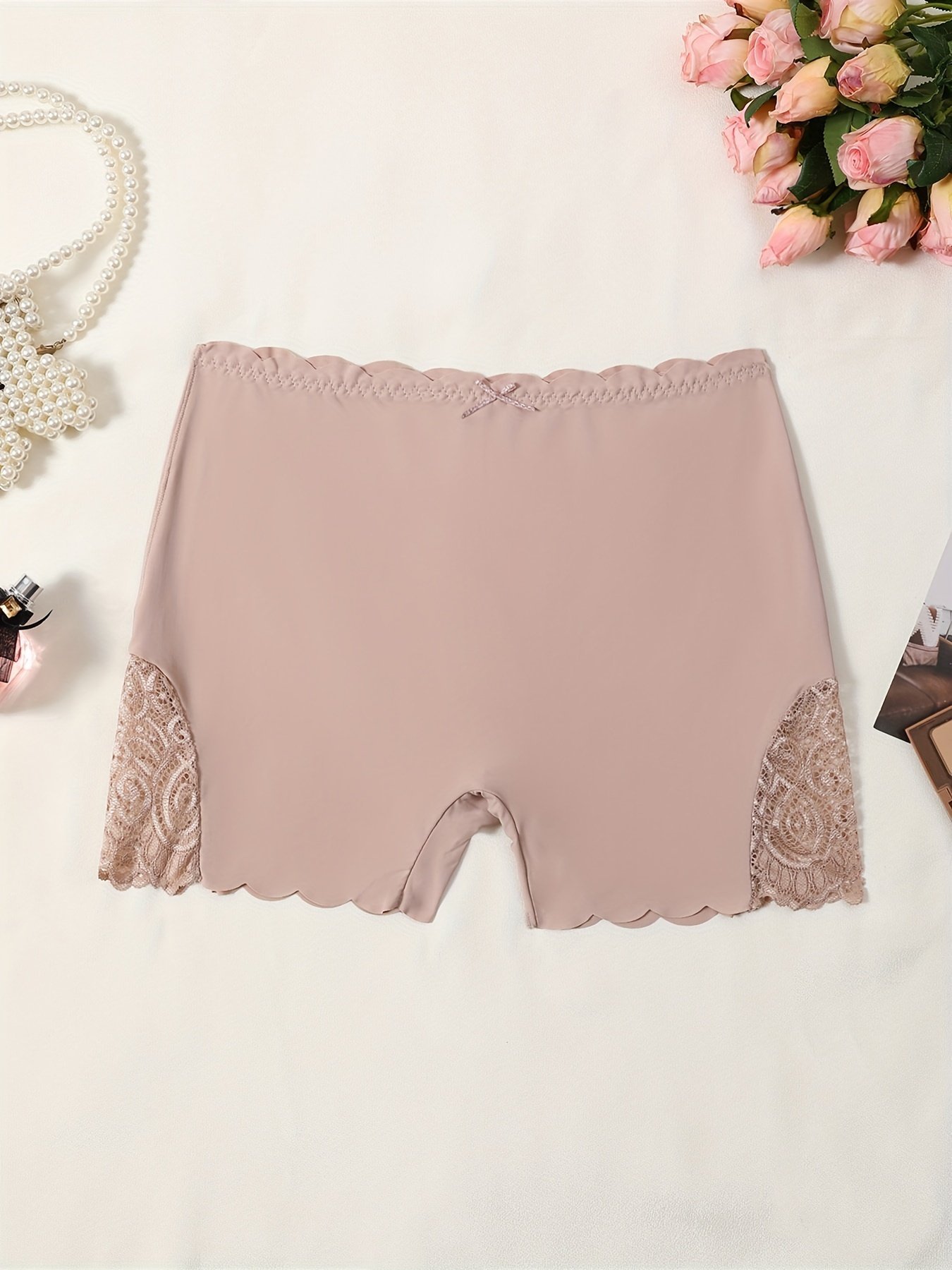 1Pc Lace Stitching Boyshort Panties, Soft & Comfortable Scallop Trim Bow Tie Panties, Women’S Lingerie & Underwear