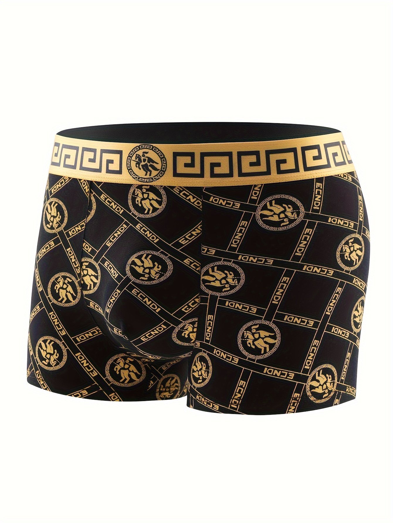 1Pc Men’S Flat Corner Underwear Black Golden Luxury Breathable High Elastic Underwear