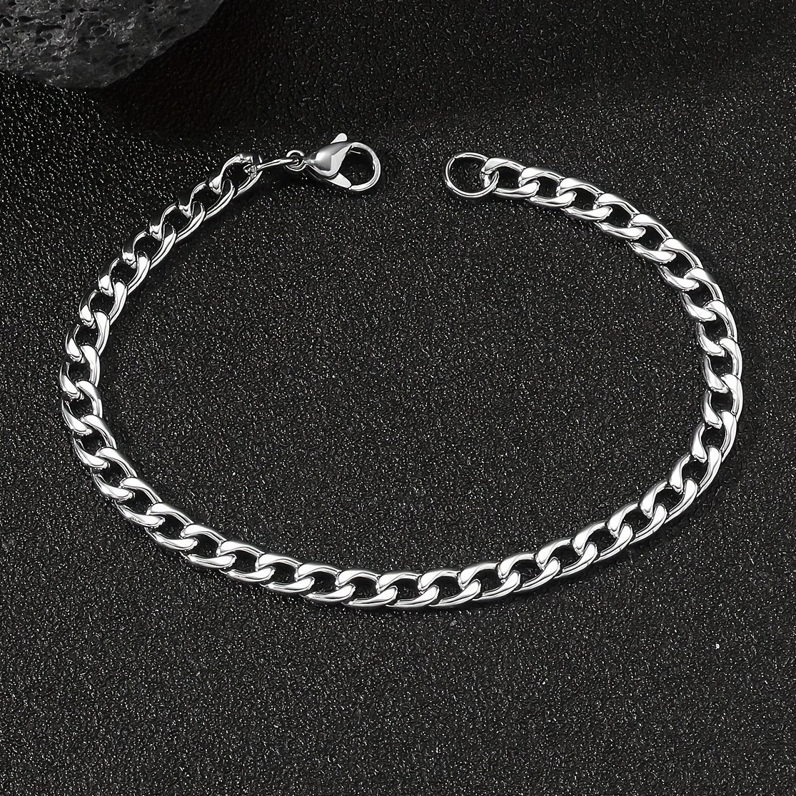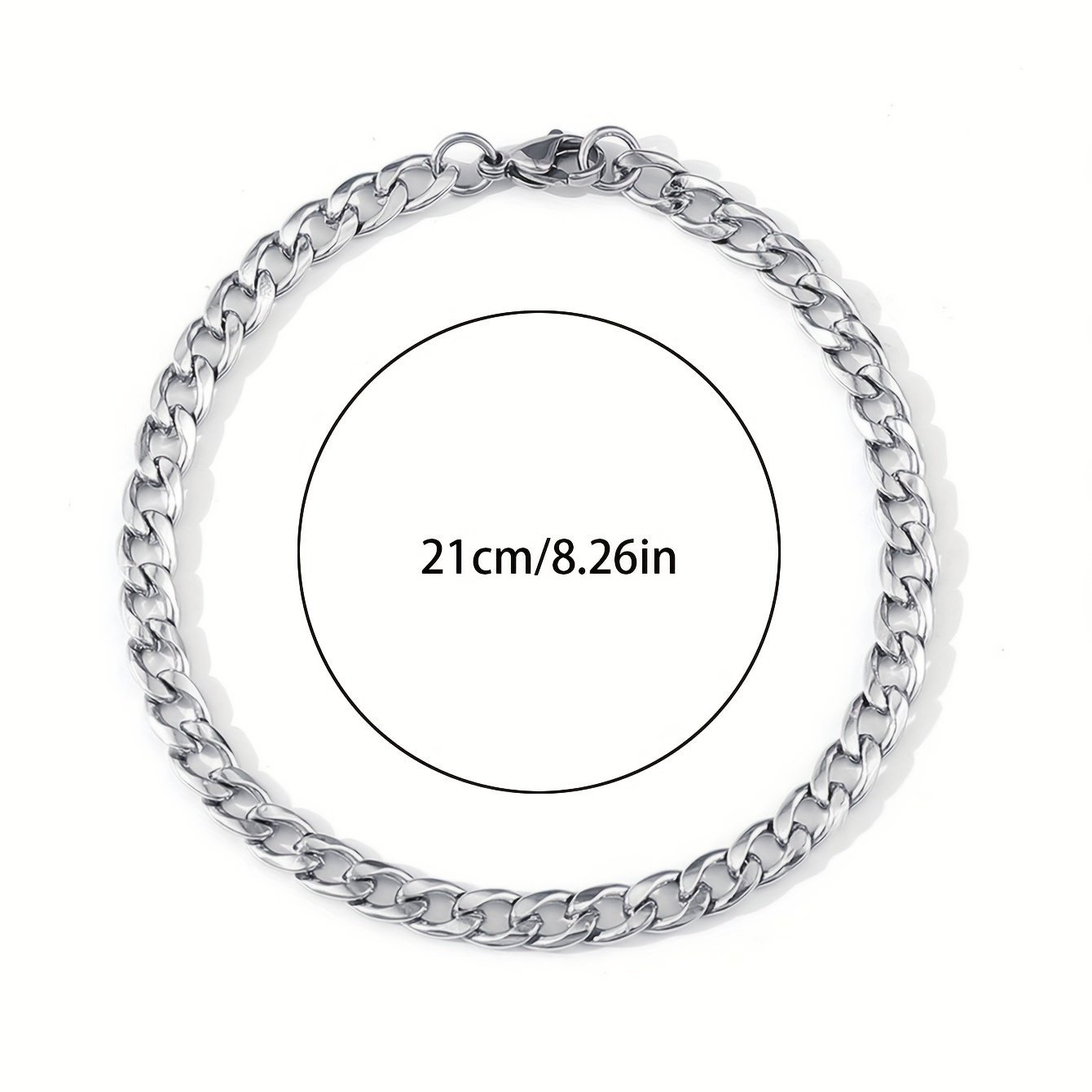 1Pc Men’S Minimalist Stainless Steel Silvery Chain Bracelet Hip Hop Punk Style Fashionable Popular Jewelry Gift Party