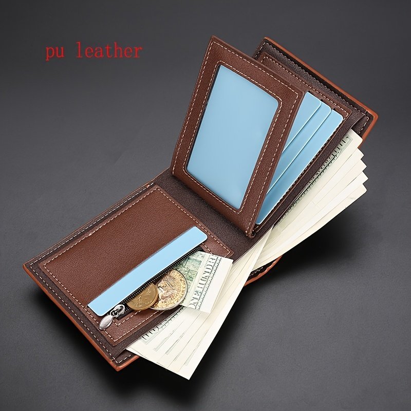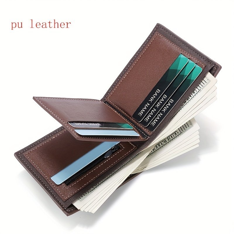 1Pc Men’S New Fashion Wallet, Large Capacity Coin Purse, Multi Card Slot Card Case With Zipper Coin Pocket Money Clip