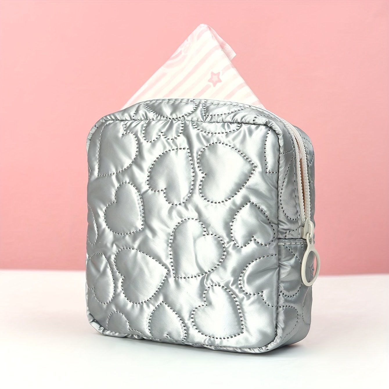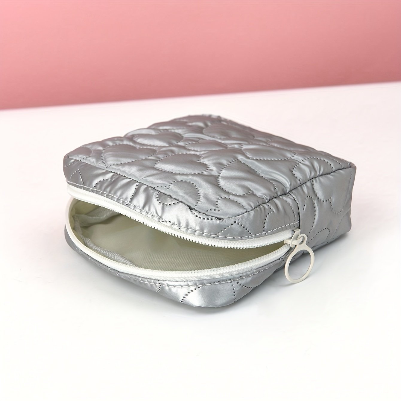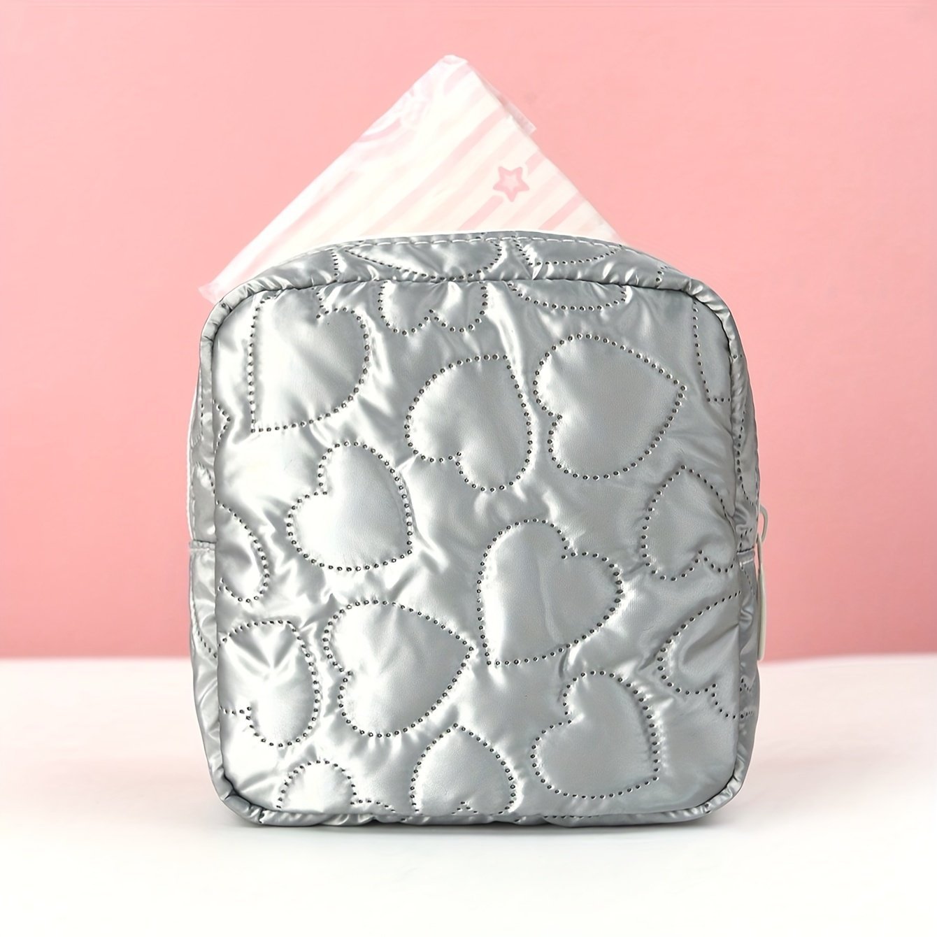 1Pc Quilted Heart Pattern Sanitary Napkin Storage Bag For Women – Cute & Cosmetic Organizer, Pu, Zip Closure – Available In Gray, Yellow, Light Blue, White