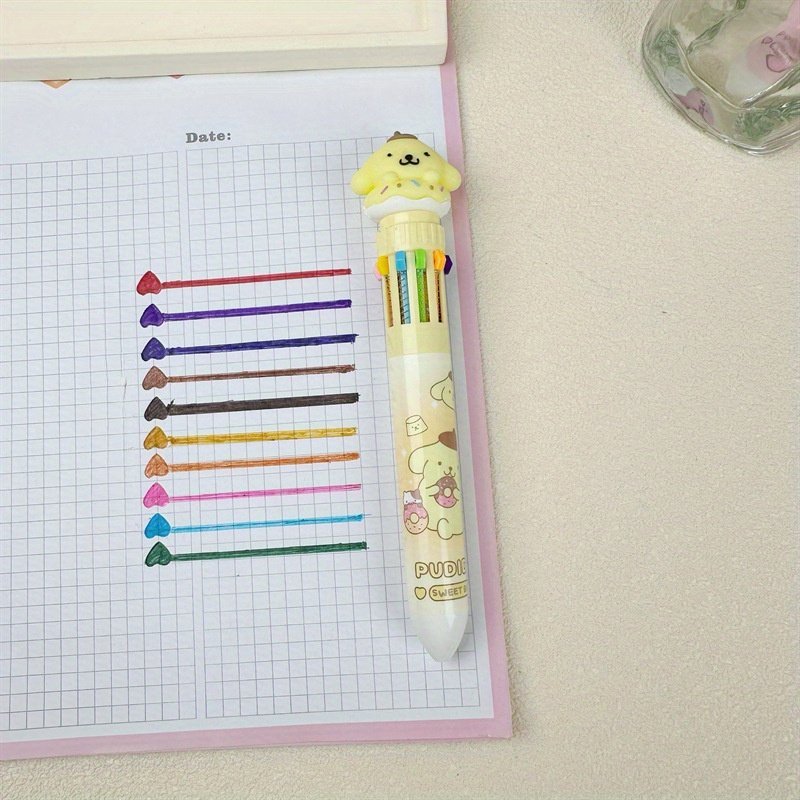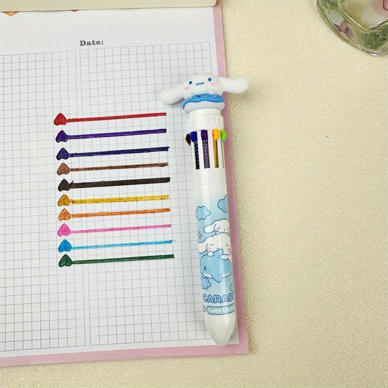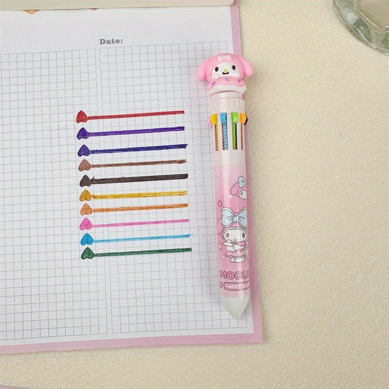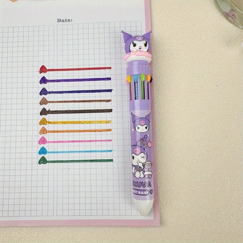 1Pc Sanrio Press Ten Color Ballpoint Pen Cartoon Kawaii Kuromi Multi-Color Gel Pen Melody Sanrio Stationery Write Cute Pens