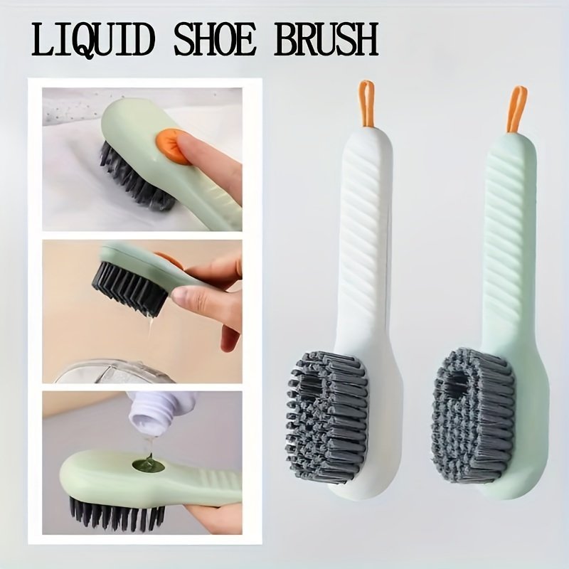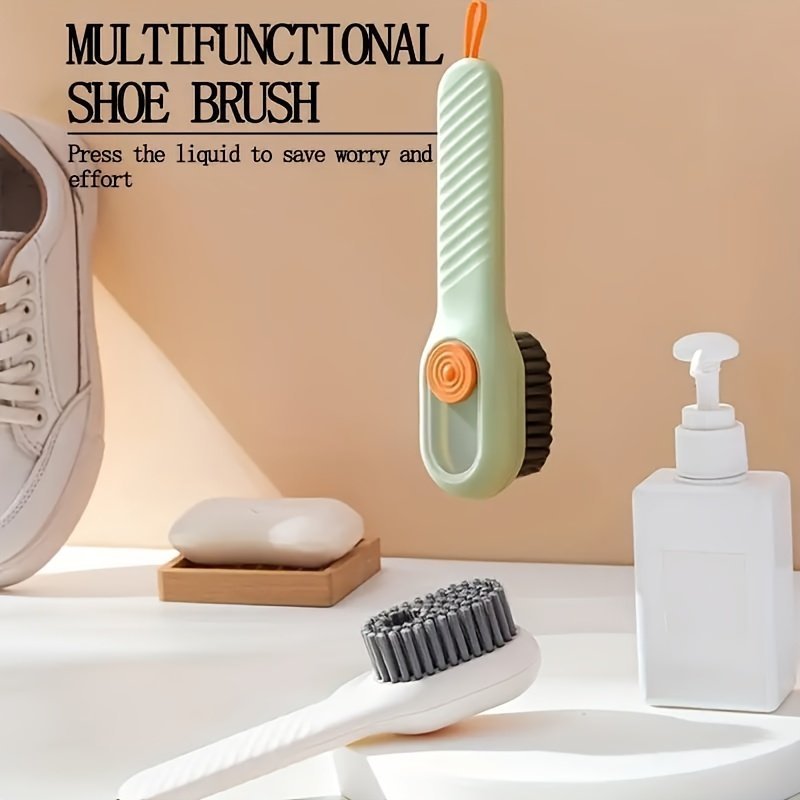 1Pc Shoe Brush With Liquid Holder, Multifunctional Shoe Brush, Press Type Shoe Washing Brush