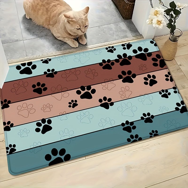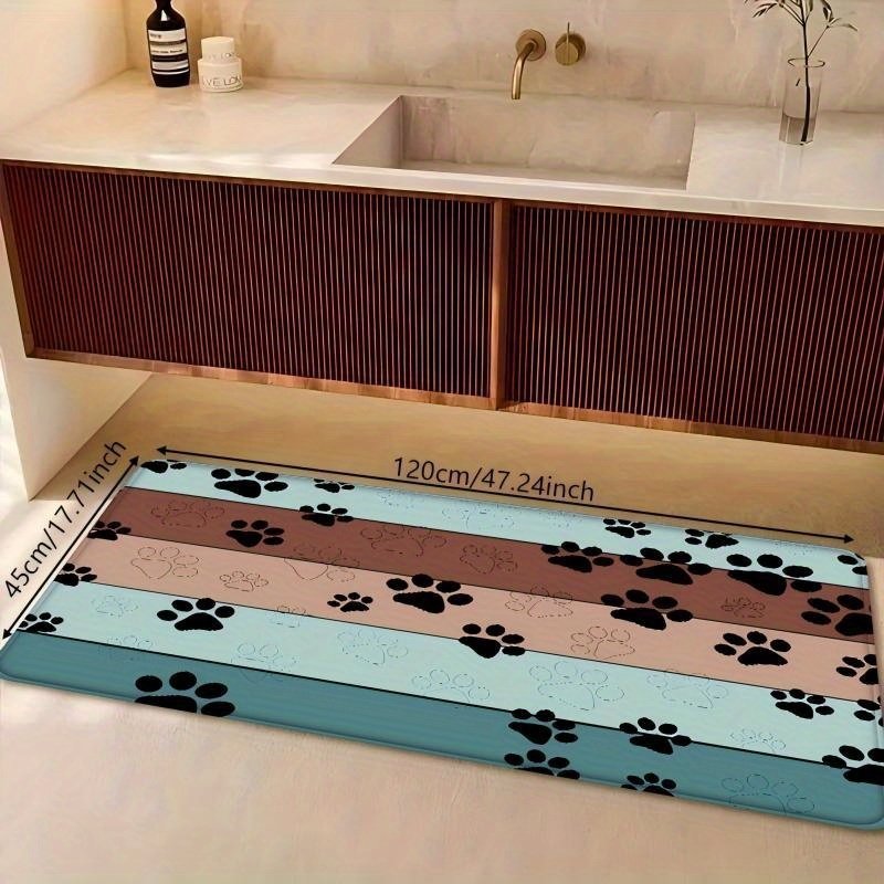 1Pc Soft & Absorbent Dog Paw Print Mat – Rectangular Polyester Pet Mat With, Quick-Dry, Washable Design – Ideal For Entryway, Bathroom, Kitchen, Living Room, Office Decor – Available In Multiple Sizes For Small To Large Dogs, Pet Mat | Playful Dog Design | Durable Dog Mat, Dog Accessories