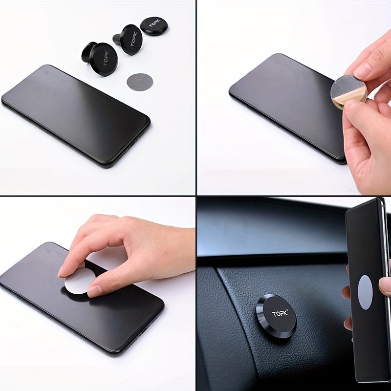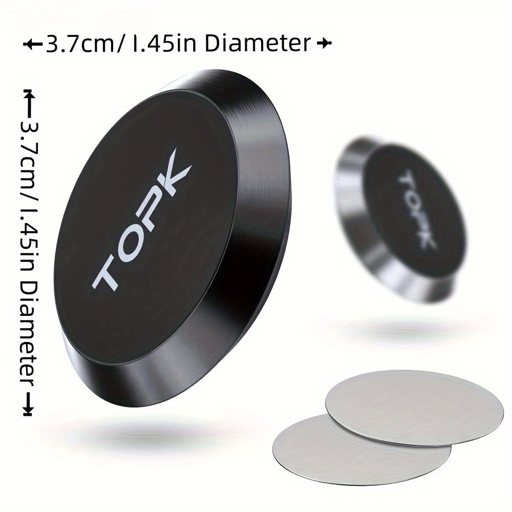 1Pc Topk 360 Free Rotation Magnetic Car Phone Holder Stand Universal Flat Stick-On Dashboard Holder +Metal Plate