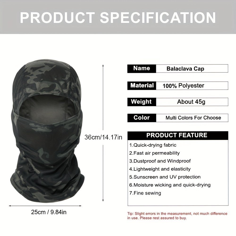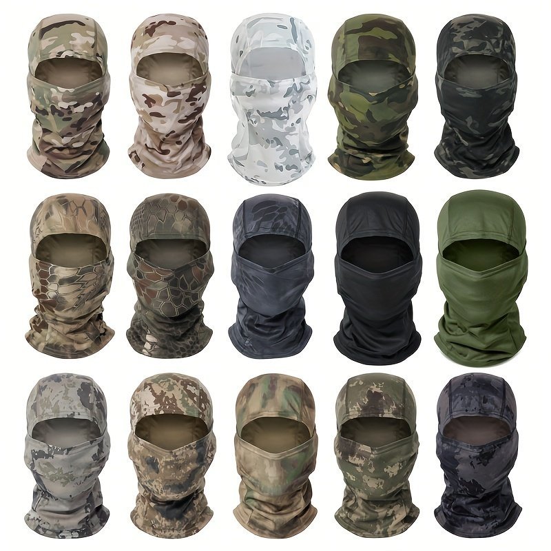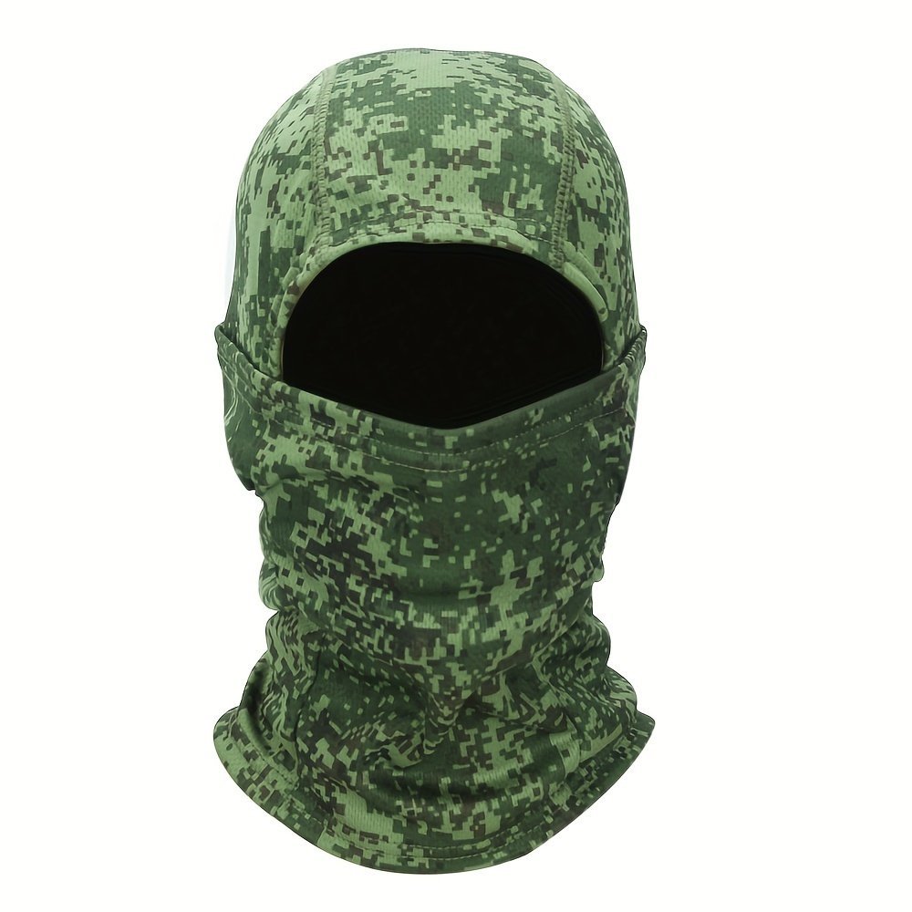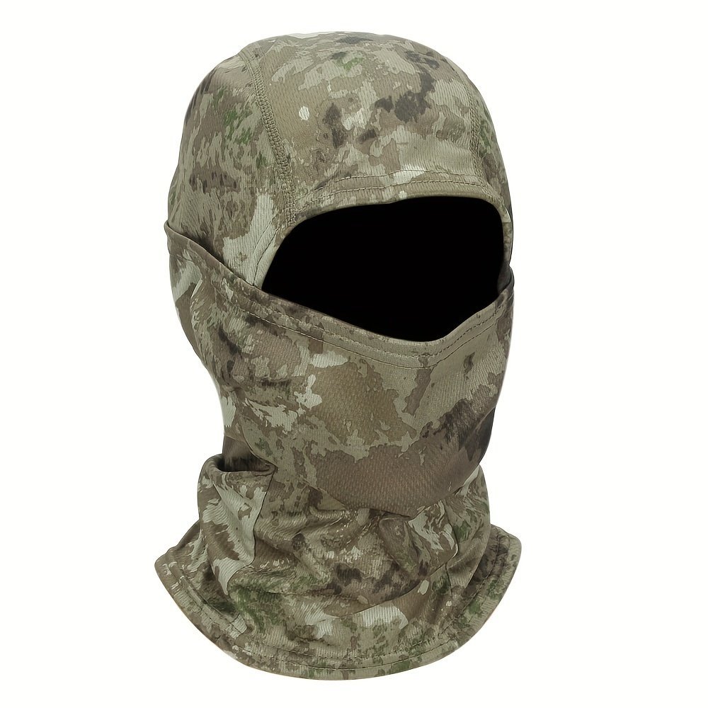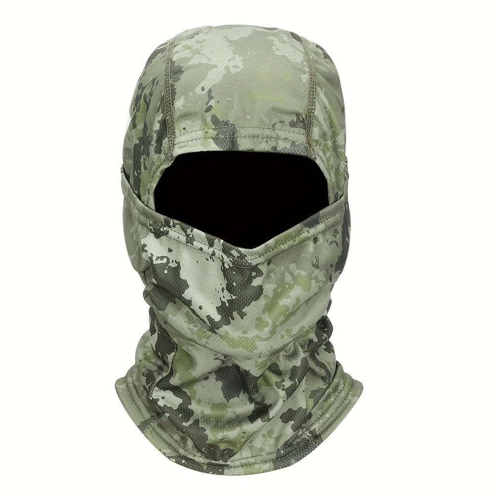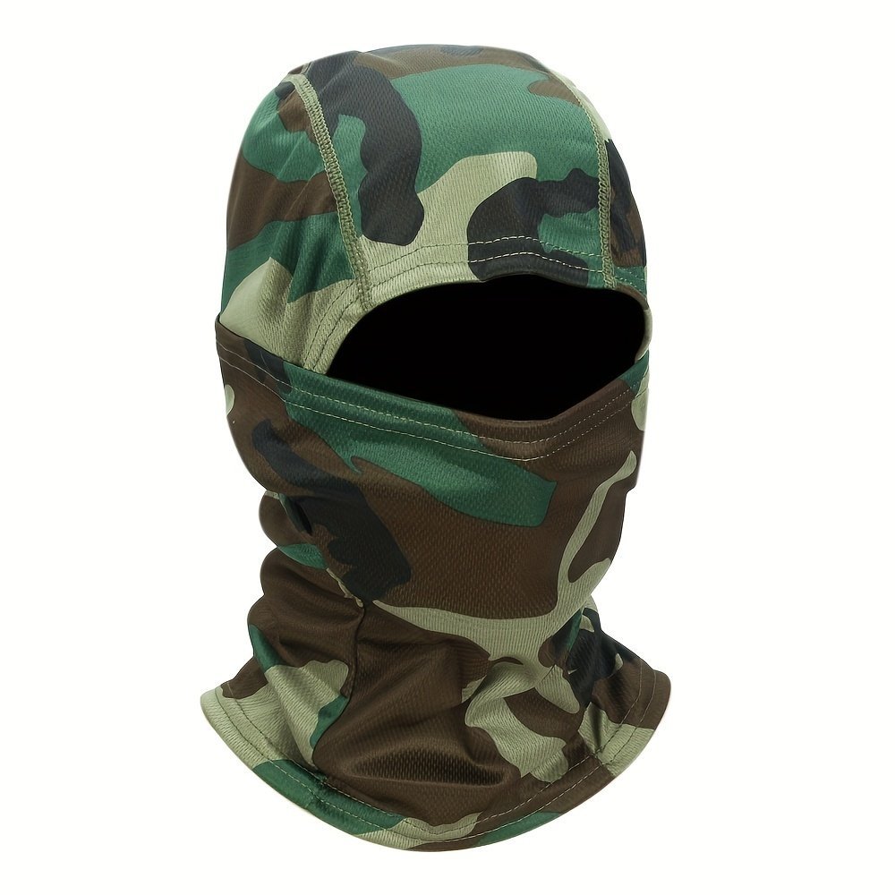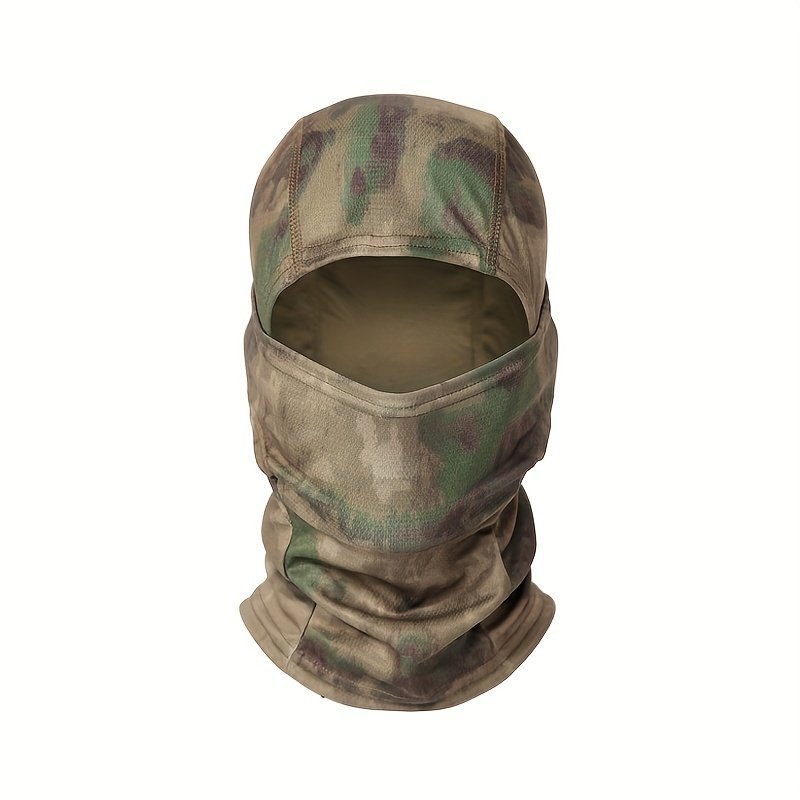 1Pc Unisex Camouflage Balaclava Hat – Full Face Mask & Neck Gaiter With Breathable Mesh-Like Texture, Multi-Color Camo Patterns (Green/Brown/Black) For Cycling, Skiing, Fishing, Motorcycling – Windproof & Sun Protection, Durable Textile Fabric, Versatile Outdoor Sports Mask & Headscarf