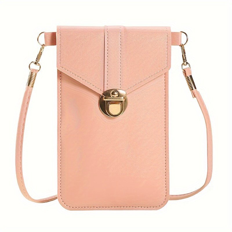 1Pc Women’S Touch Screen Crossbody Phone Bag – Stylish Mini Shoulder Wallet With Detachable Strap, Golden-Tone Clasp & Card Holder, Pink, Phone Purse