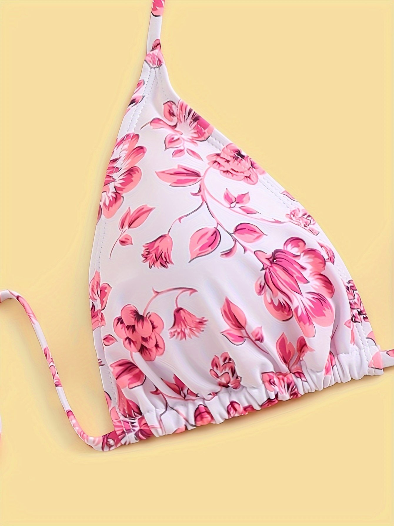 1Set Women’S Floral Print Halter Neck Bikini Set, High Elasticity Polyester Fabric, Casual Two-Piece Swimsuit With Tie Details, Knitted Fabric, No Belt, Regular Fit