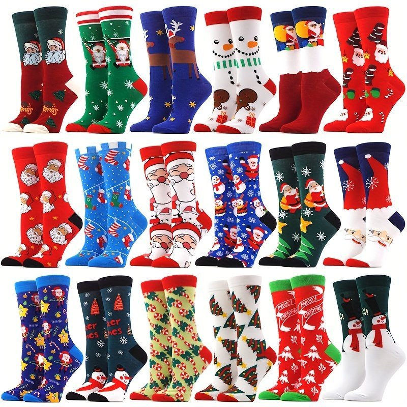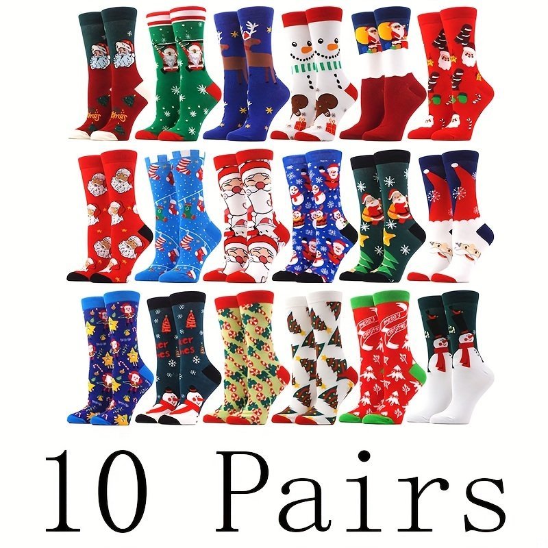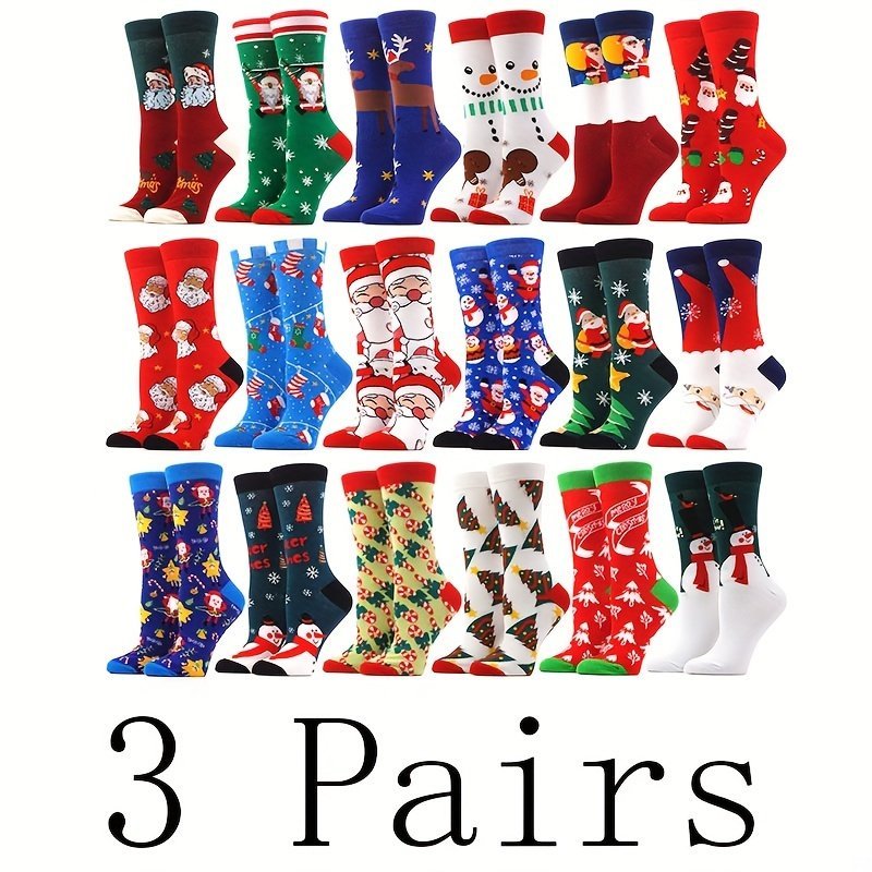 2/3/5/10 Pairs Of Neutral Christmas Socks With Funny Santa Claus, Snowflakes, Elk And Crew Members, Men’S New Year Fun Socks