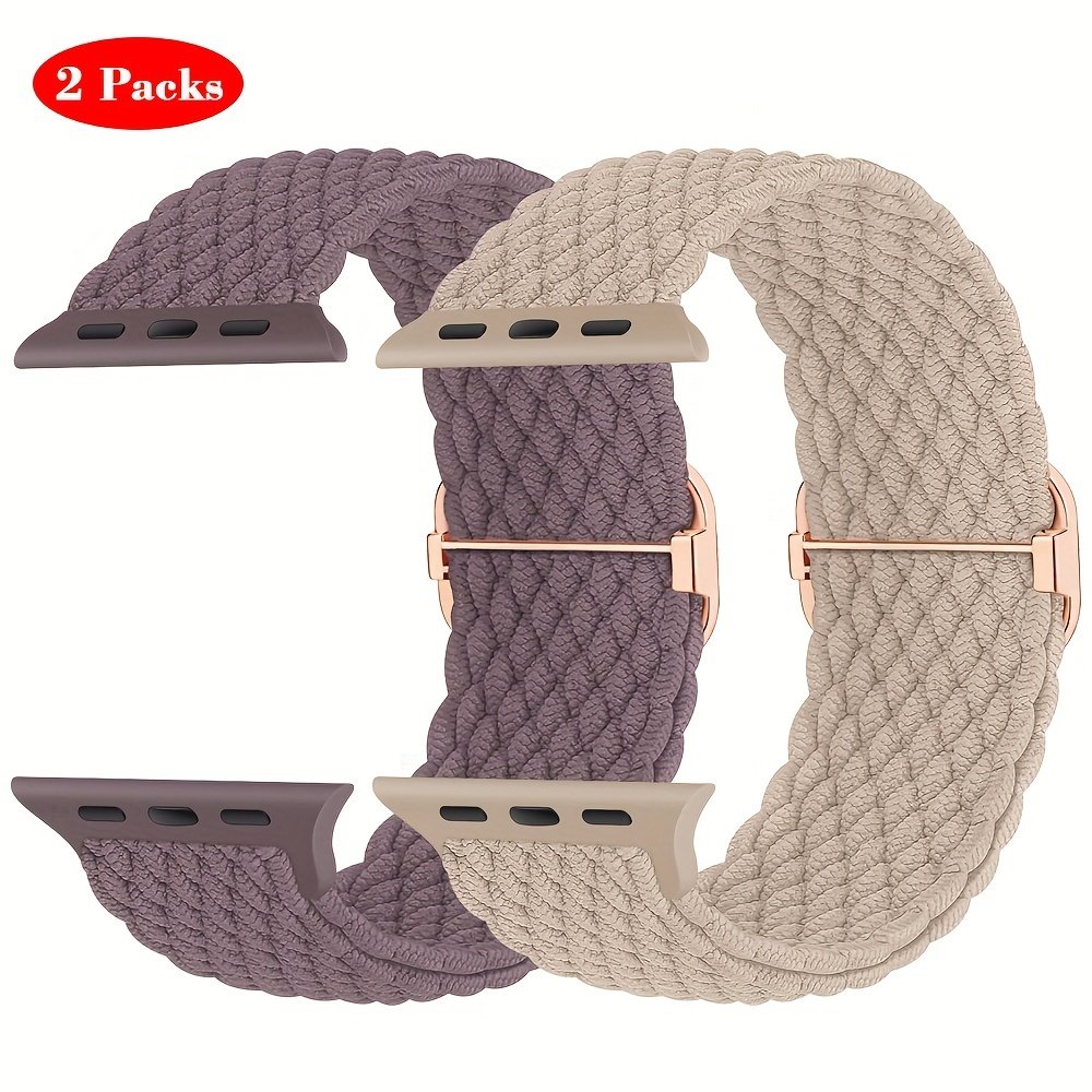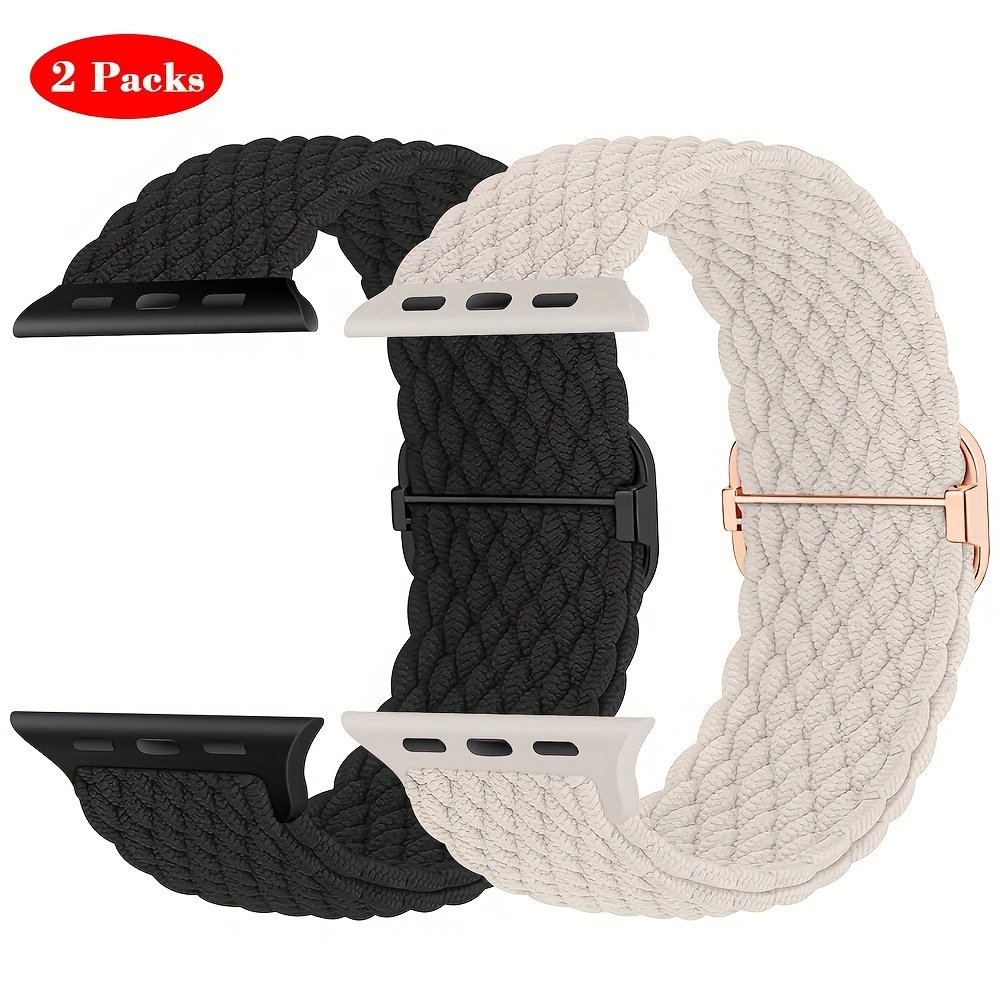 2-Pack Braided Nylon Watch Bands For Apple Watch – Adjustable Hook-And-Loop Closure, Durable & Comfortable Straps In Beige & White, Perfect For Casual Attire, Casual Wear Bands|Adjustable Strap|Durable Watch Band, For Apple Watch Accessories