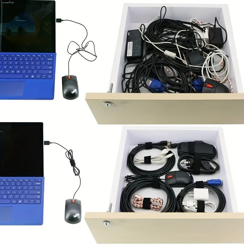 The cable organizer is constructed from premium nylon material. It features hook and loop fastenings, and the material is robust and long-lasting, guaranteeing that the cable stays in position and won’t go missing.