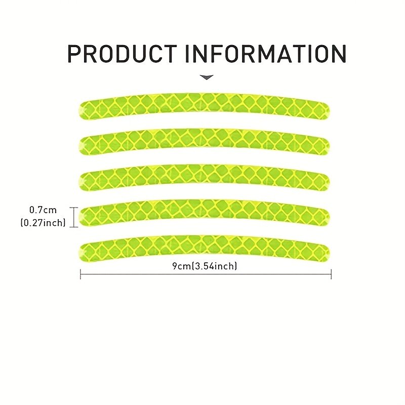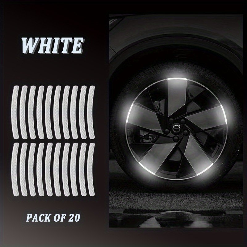 20pcs super practical and multi-color optional super reflective wheel hub safety warning stickers; High-quality material, self-adhesive backing, bright and convenient installation when exposed to light, waterproof and sunscreen, firm paste, flexible and flexible can be bent with the curvature of the body and closely fit the body; Super reflective, early warning, can protect the safety of the driver, highlight the personalization