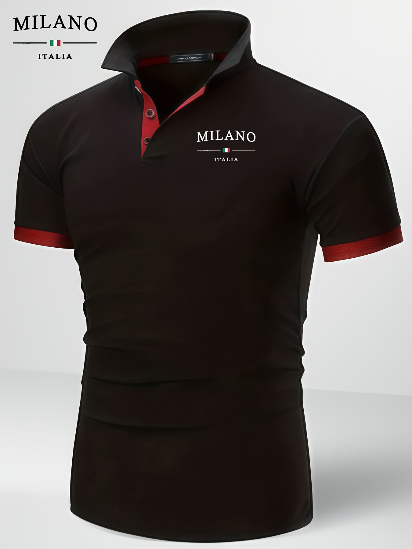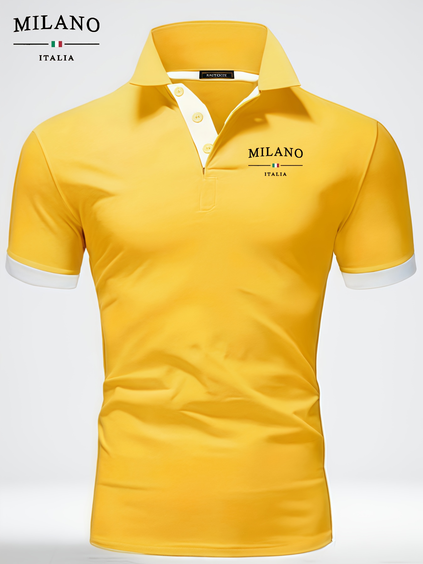 2025 Men’S Lightweight Breathable Polo Shirt With “Milano Italia” Letter Print – Casual Business Style, Short Sleeve, Button-Up Collar, Perfect For Summer Vacations & Outdoor Activities, Summer Casual Wear | Stylish Polo Shirt | Comfortable Fit, Polo Shirts