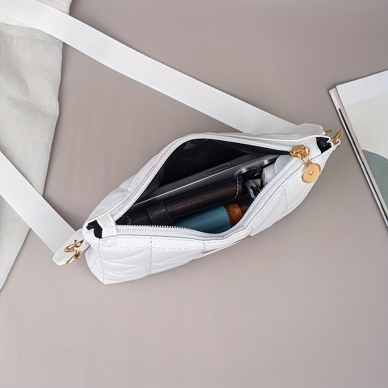 2025 New Women’S Fashion Quilted Chevron Crossbody Bag – With Adjustable & Detachable Strap, Golden-Tone Hardware, Zipper Closure, Khaki/White/Black, Crossbody Purse, Versatile Travel Purse, Modern Accessory, Durable Polyester Lining, Everyday Handbag, Stylish Handbag, Highquality Stitching, Compact Handbag, Daily Essentials