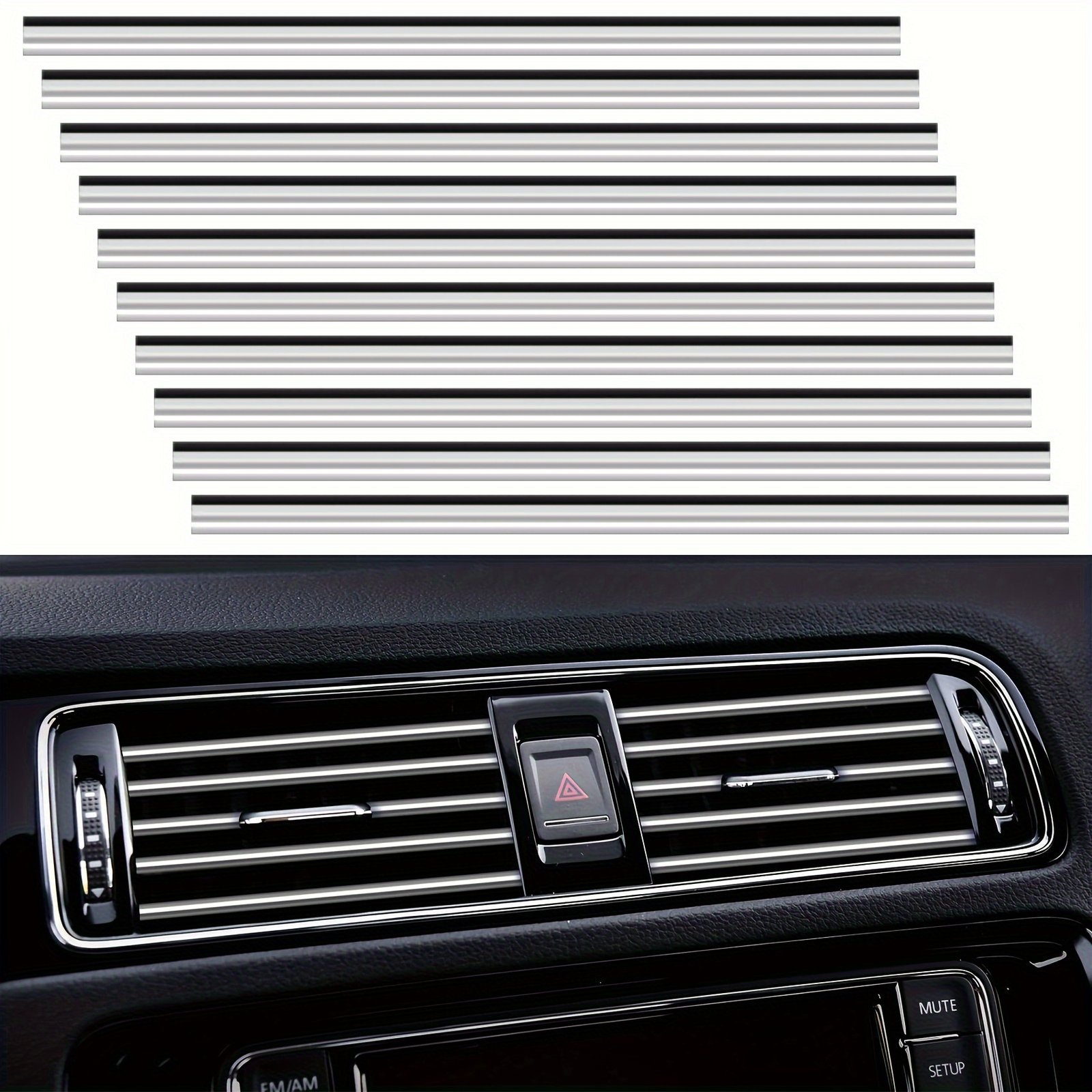 20Pcs Car Air Conditioner Air Outlet Decorative Strips, Bendable Diy Decorative Strips, Universal For Most Air Outlets, Flexible Shiny Auto Car Vent Interior Accessories For All Air Vent Outlet Christmas Gift
