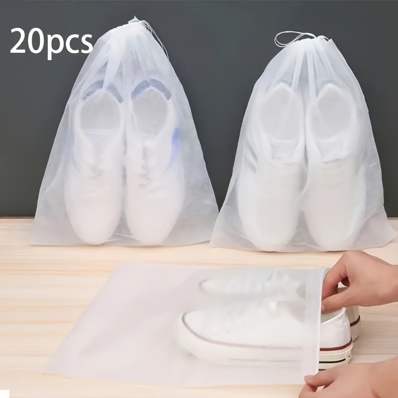 20Pcs Non- Dustproof Drawstring Storage Bags – Lightweight Shoe & Accessory Organizers With Secure Closure, Minimalist White Design For Travel, Closet & Home Organization, Shoe Storage Organizer, Transparent Design, Easy Pull Closure