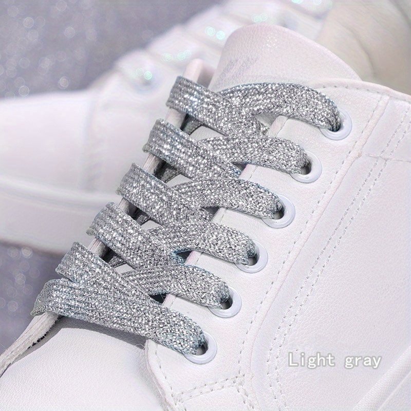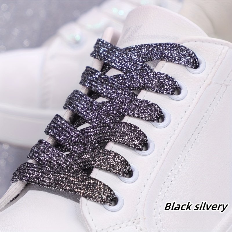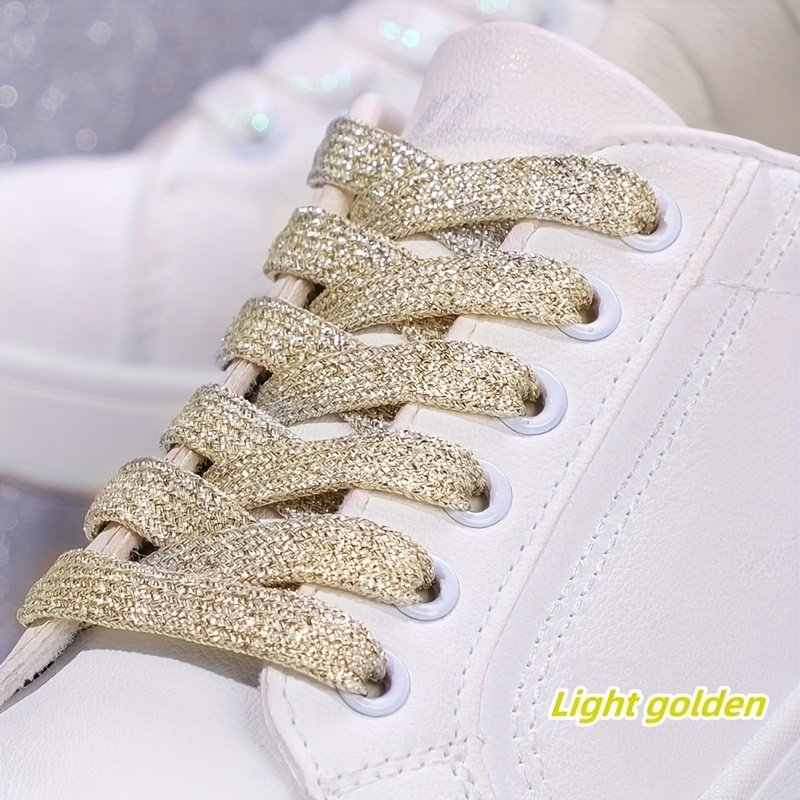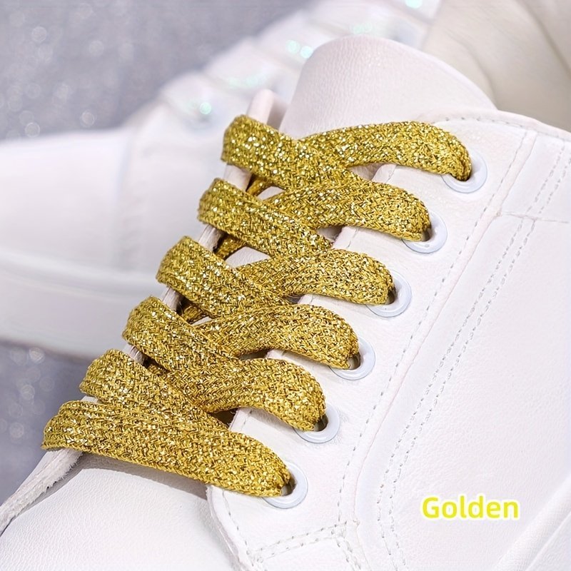 2Pcs Glitter Shoelaces Set, Soft Polyester Knitted Laces, Solid Color, Metallic Golden & Silveryy, Hand Washable, Sports Style, Perfect For Sneakers, Running, Christmas, Valentine’S Day, Campus Events