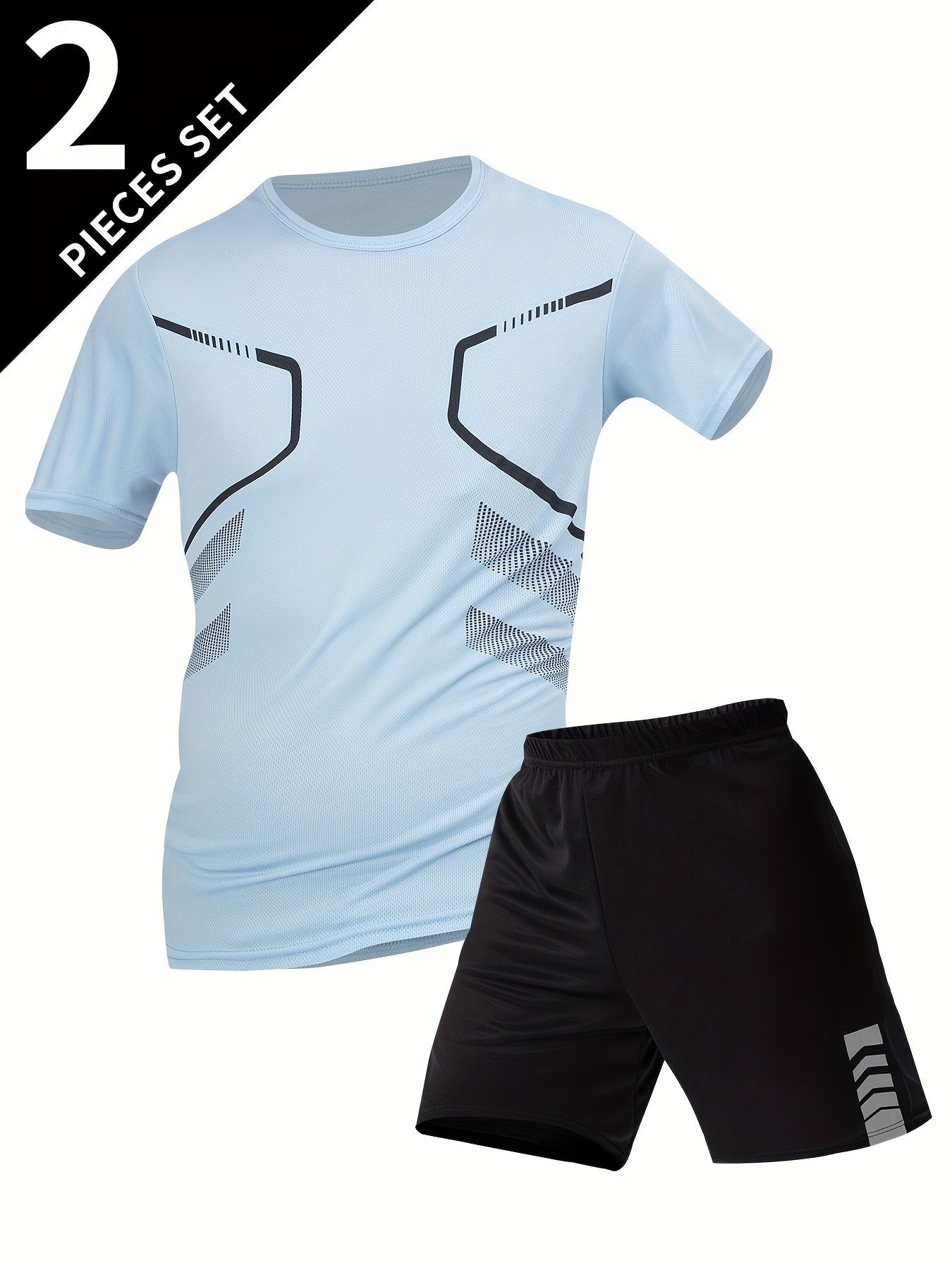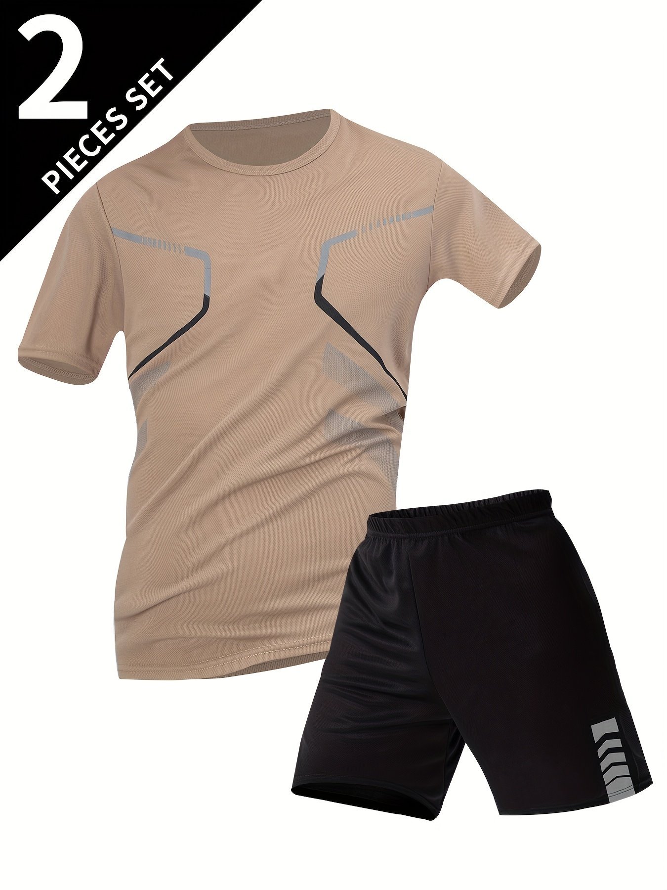 2Pcs Men’S Summer Short Sleeve Suit – Casual Sporty Round Neck T-Shirt & Shorts Set, Breathable Polyester Blend, Regular Fit, White & Black With Orange Accents, Perfect For Outdoor Activities, Summer Casual Wear | Sporty Look | Comfortable Fit, Summer Shorts