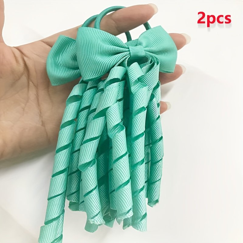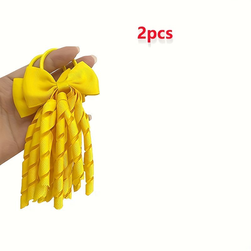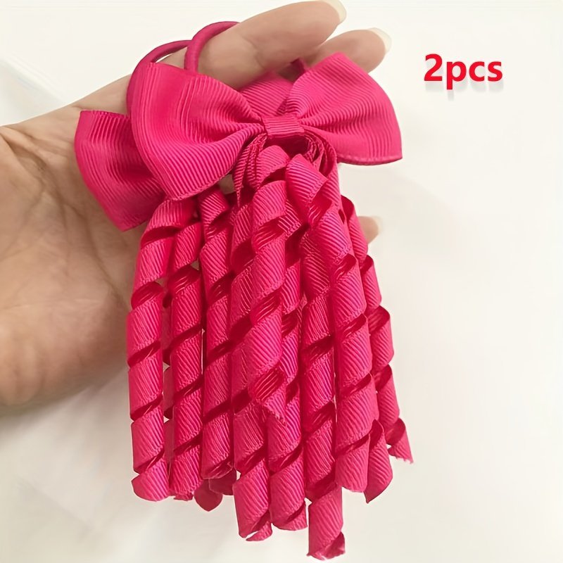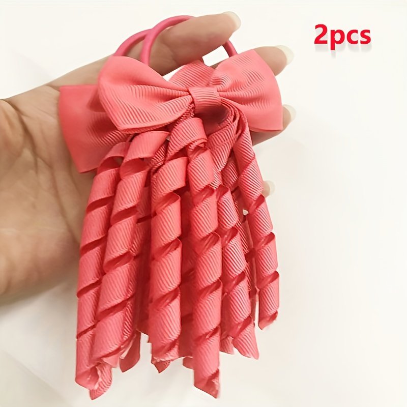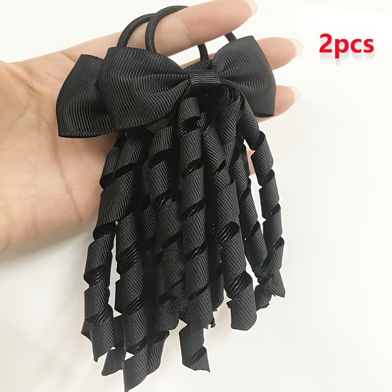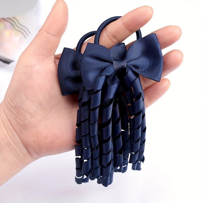 2Pcs Set Girls’ Tassel Ponytail Holder With Cute Bow Elastic Hair Band Headband Fashionable Hair Accessory