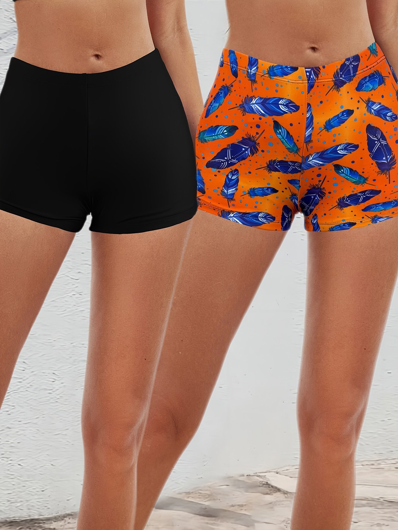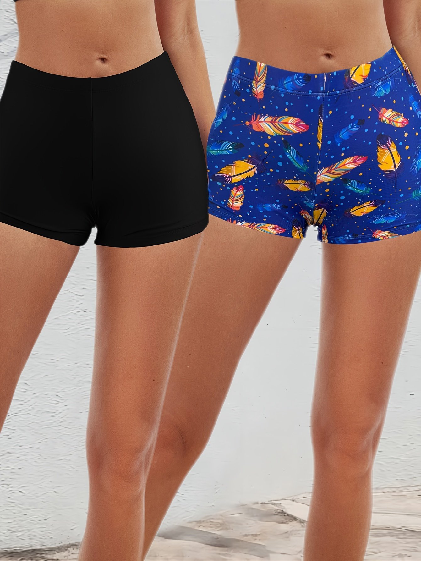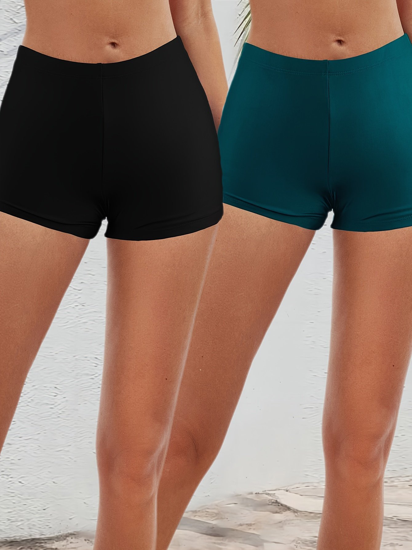 2Pcs Solid Color Casual Swim Shorts, Plain High Stretch Slimming Beach Bottoms, Women’S Swimwear & Clothing
