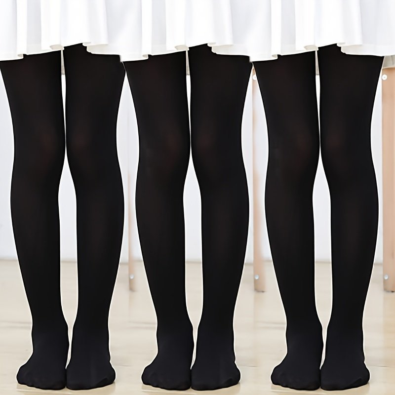 3-Pack Girls’ Velvet-Like Dance Tights – 95% Nylon & 5% Spandex, Solid Color Ballet & Everyday Leggings For Ages 3+, Spring/Fall Hand Wash Only