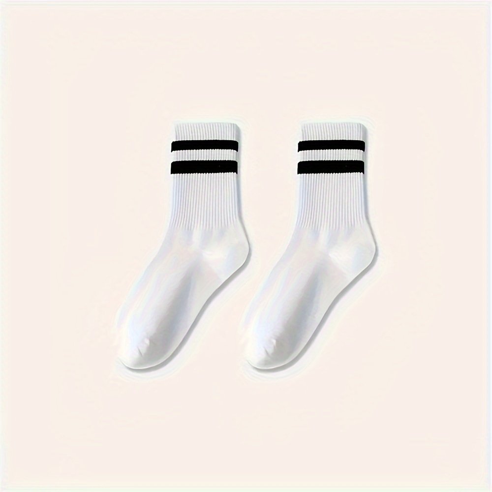 3 Pairs Breathable Sports Socks – Moisture-Wicking Mid-Calf Crew Socks With Black & White Stripes, Soft Polyester For Gym, Running, Hiking – All-Season Casual Athletic Socks, Gym Essentials, Striped Pattern, Sweat Absorption