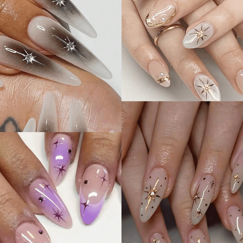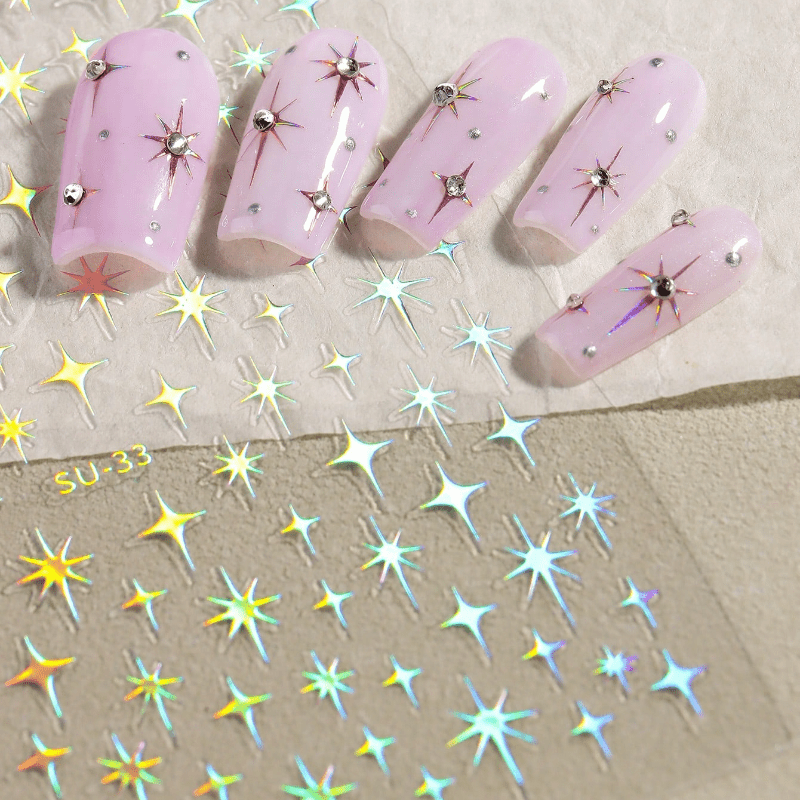 3 Pcs 3D Metal Laser Golden Starburst Nail Stickers – Y2K Nail Art Tips For Manicure And French Nail Art Decoration