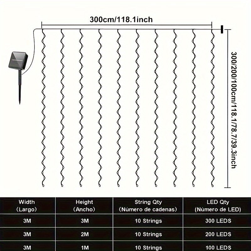 300/200 Led Solar Curtain Lights – 8 Lighting Modes, Fairy Tale Copper Wire Decor For Christmas, Weddings, Home & Garden, Outdoor 298.7Cm X 298.7Cm