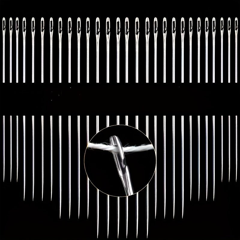 30Pcs Self-Threading Needles Set, Assorted Sizes, Wooden Storage Tubes, Easy Insertion For Elderly, Hand Sewing, Quilting, Clothing & Cross Stitch, Light & Dark Brown