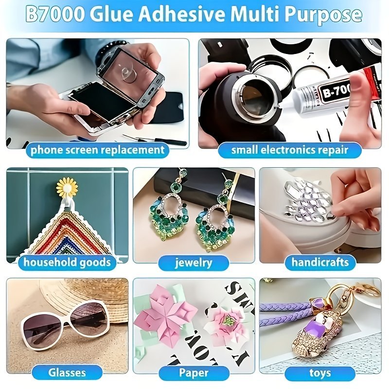 3Pcs/6Pcs/B-7000 Strong Glue, Handcraft Adhesive For Electronics, Jewelry, Crafts, Books, Fabrics, Etc., Multi-Purpose Bonding Agent, Durable, Transparent, Flexible, Suitable For Metal Plastic Acrylic Faux Leather Paper Cloth
