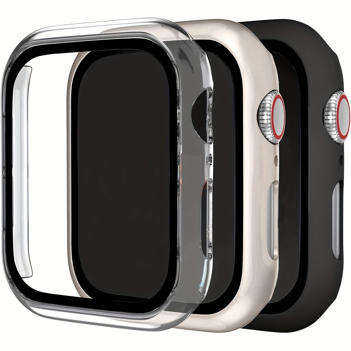 3Pcs For Apple Watch Case Set With Tempered Glass Screen Protector, Anti-Drop Fashion Casual Protective Cover, Compatible With For Apple Watch Series 38/40/41/42/44/45/46/49Mm, Smartwatch Accessories, Smartwatch Protection | Sleek Watch Case | Tempe