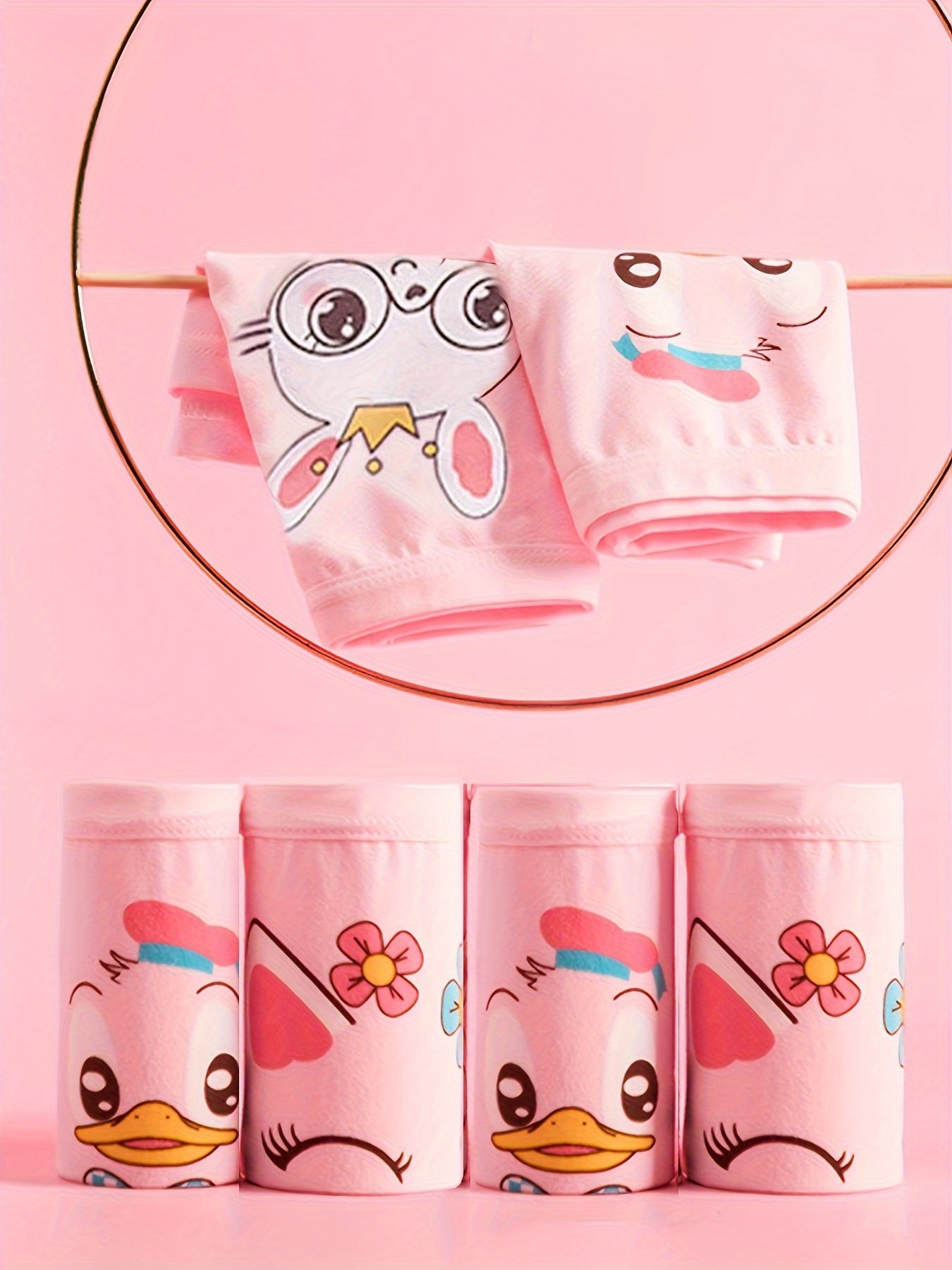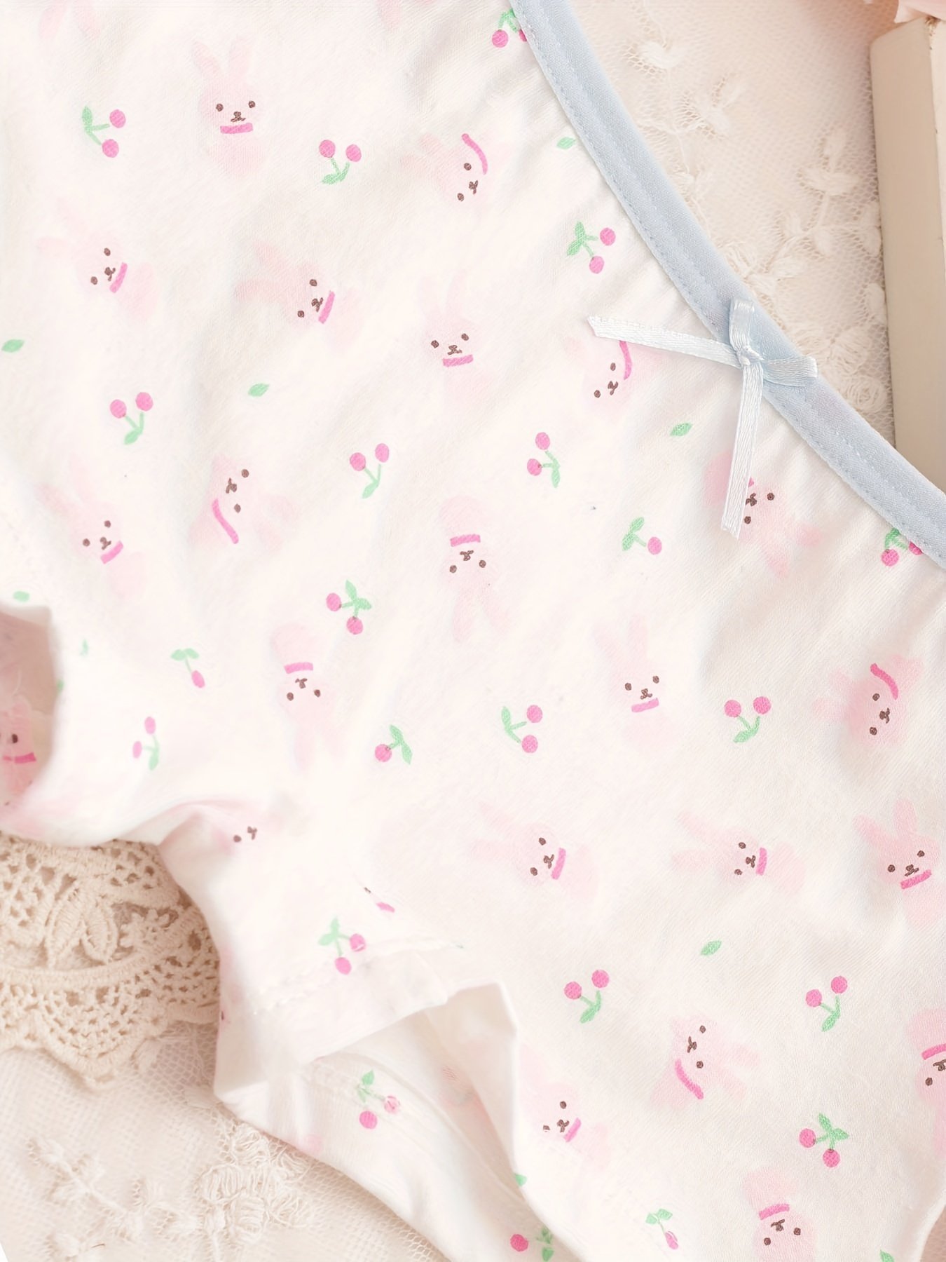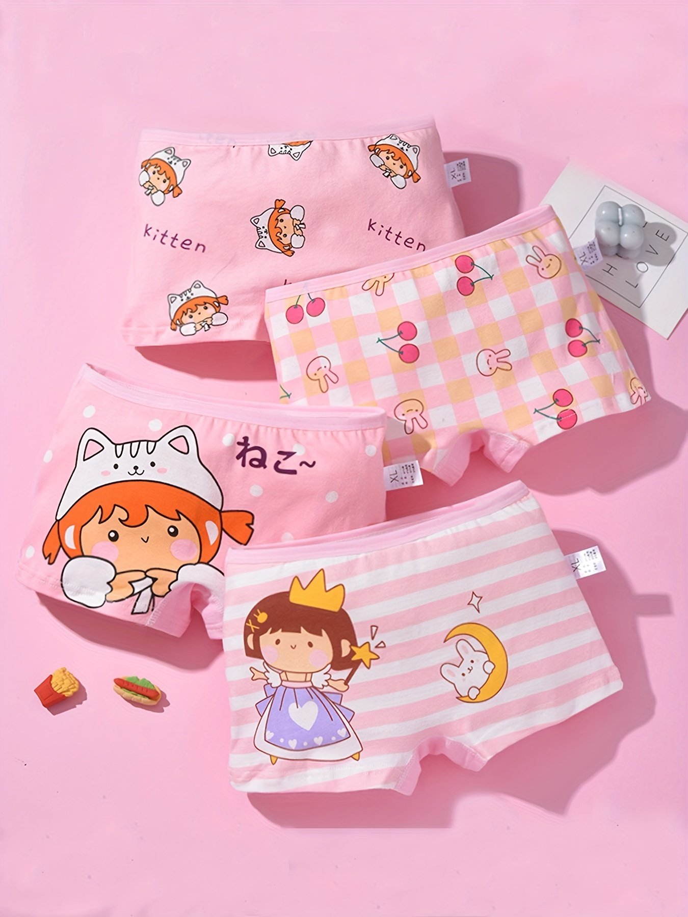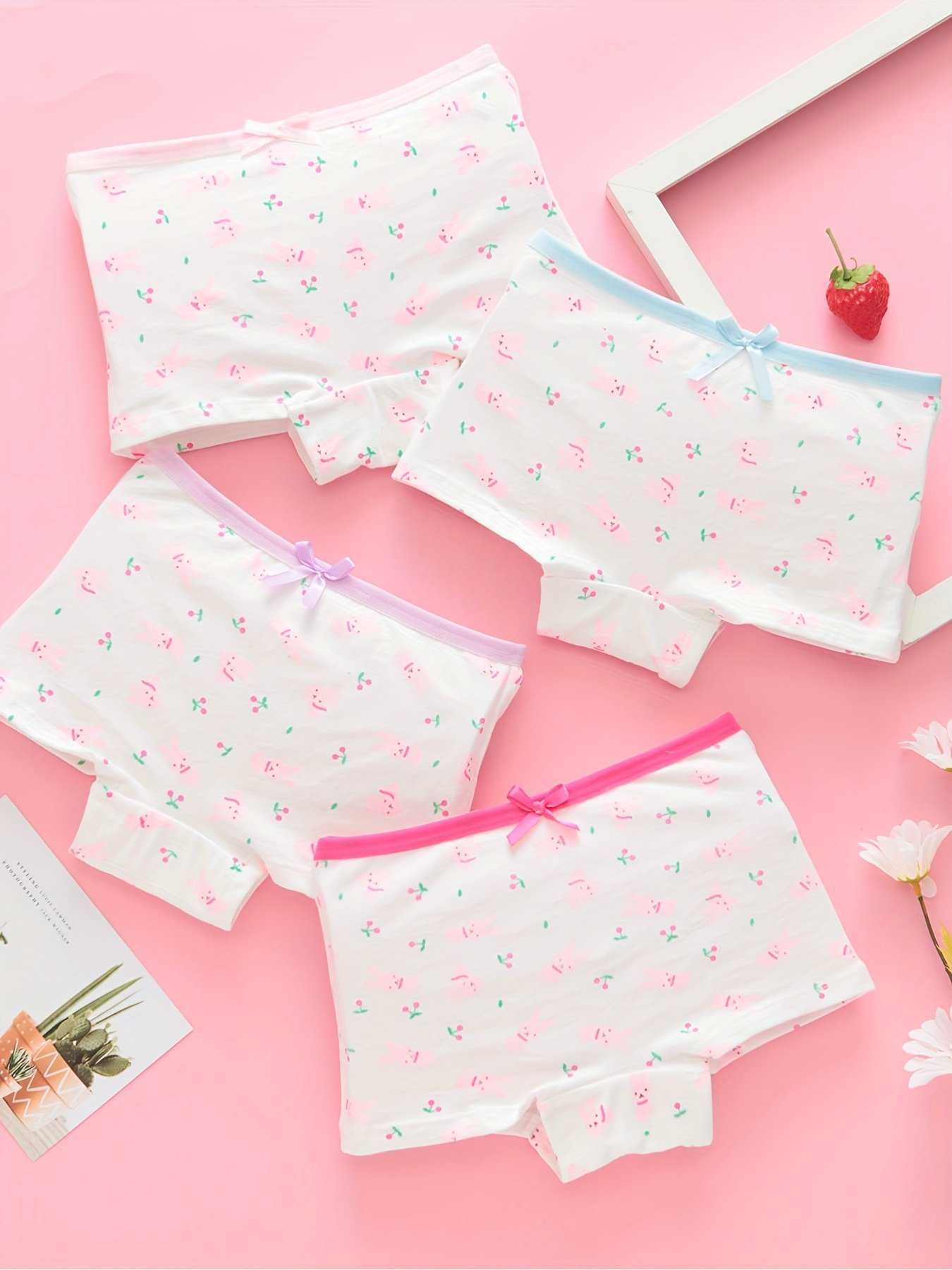 4-Pack Girls’ Cute Bunny & Cat Print Boxer Briefs – Soft Stretchy Mid-Rise Underwear With Pastel Colors, All-Season Comfort, Regular Fit For Youngsters & Youngsters, Youngsters Underwear, Playful Youngsters’ Apparel, Comfortable Youngsters’ Wear