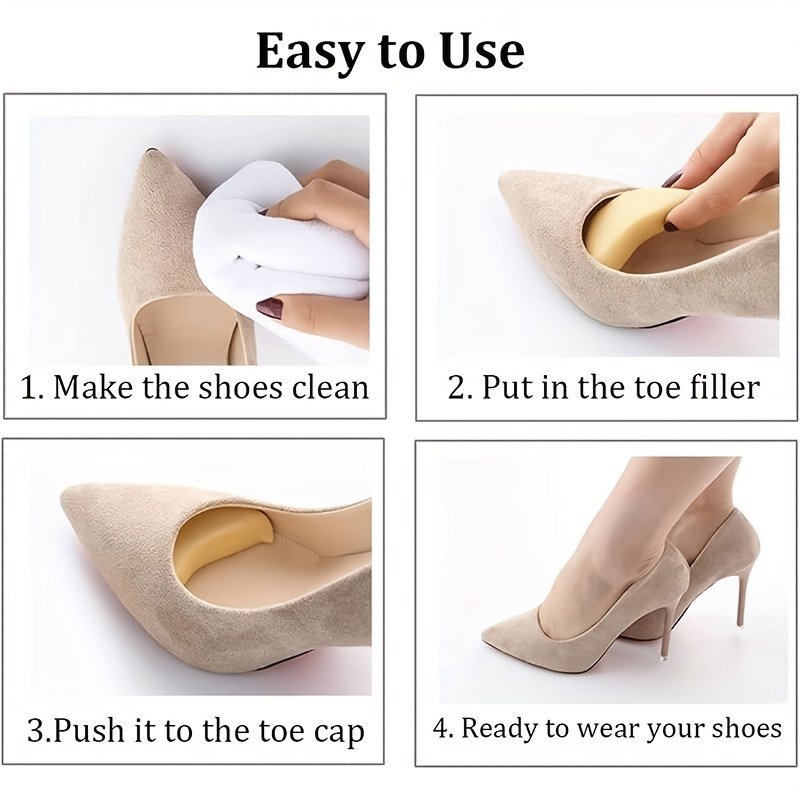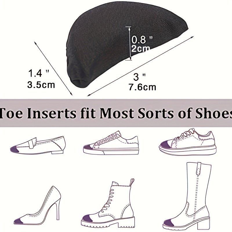 4 Pairs Toe Inserts For Too Big Shoes, Shoe Inserts For Women Men, Foam Toe Filler, Shoe Fitters, Black And Beige