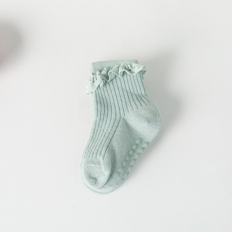 4 Pairs Youngsters’ Princess Non-Slip Socks – Soft Knit Lace-Trimmed Toe & Heel, Breathable All-Season Floor Socks For Girls, Valentine’S Day Gift (Pink, White, Light Blue), Baby Socks, Playful Baby Design, Ribbed Texture