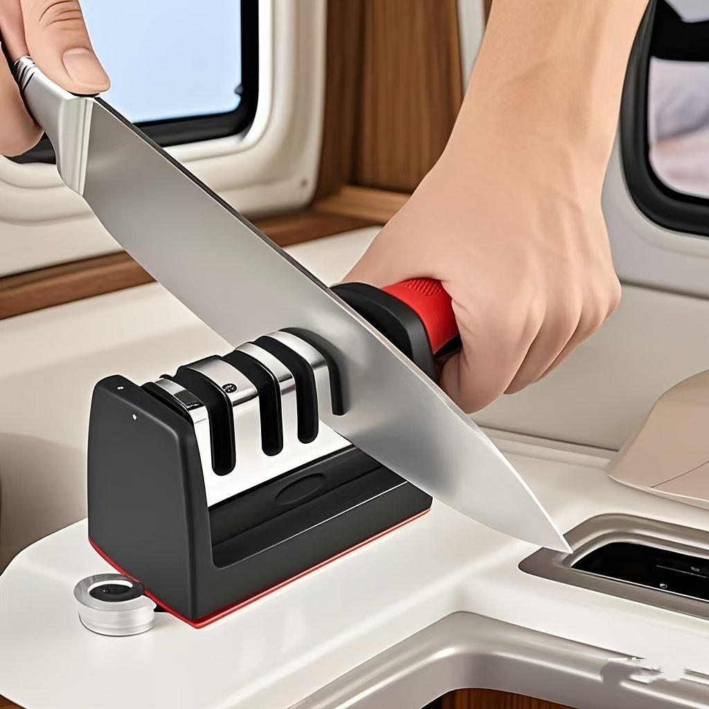 4-Stage Professional Knife Sharpener, Tungsten Steel, Diamond & Ceramic Grinding Stones, For Kitchen Knives, Non-Electric, Rv Kitchen Accessories Rv Kitchen Cooktop Accessories, Without Battery