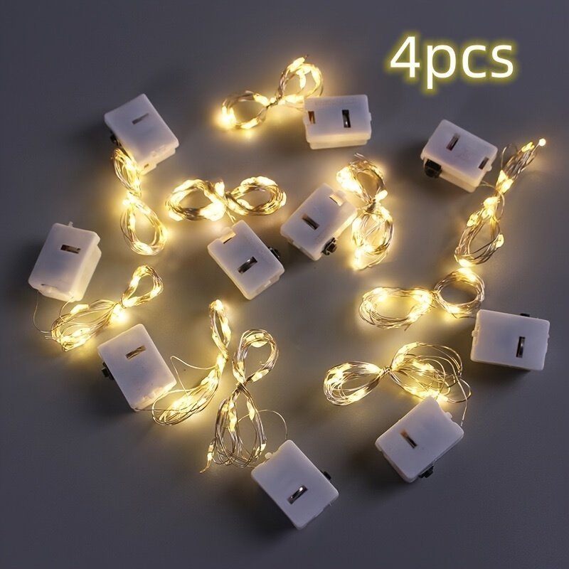 4Pcs/10Pcs Led Fairy Light Battery Powered String Light Silver Wire 201.17 Cm 20 Led Firefly Starry Sky Moon Light Suitable For Diy Wedding, Party, Bedroom, Courtyard, Christmas Atmosphere Light, Cake, Flower Bouquet Decoration