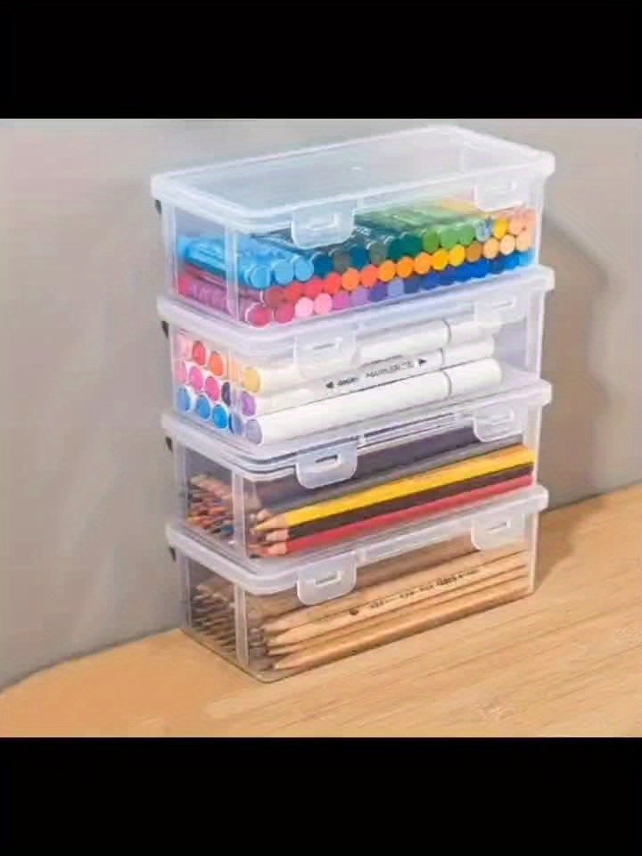 4Pcs Large Transparent Pp Storage Boxes With Lids, Suitable For Pens, Pencils, Markers, Crafts – Office And School Supplies Organizer, School Supplies Storage, Transparent Design, Secure Lid Feature