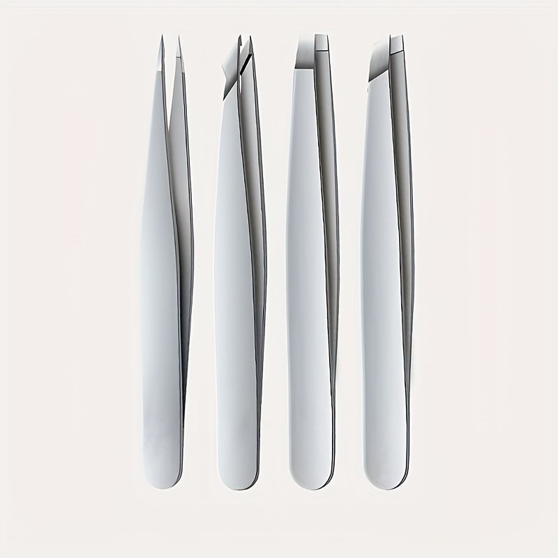 4Pcs Stainless Steel Tweezers Set Eyebrow Splinter & Ingrown Hair Removal Tools With Storage Bag For Men & Women Eyebrow Grooming Tools