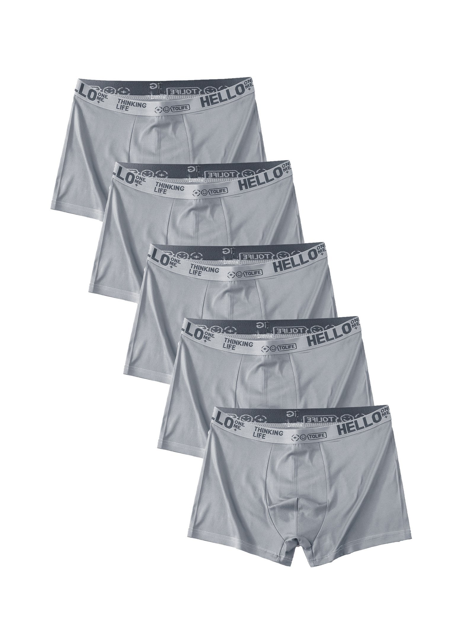 5-Pack Men’S Boxer Briefs, Polyester & Spandex Blend, Medium Stretch, Solid Color, Knit Fabric, Breathable Daily Casual Underwear With Quick Dry Feature