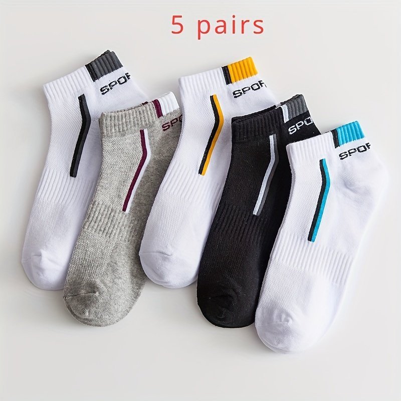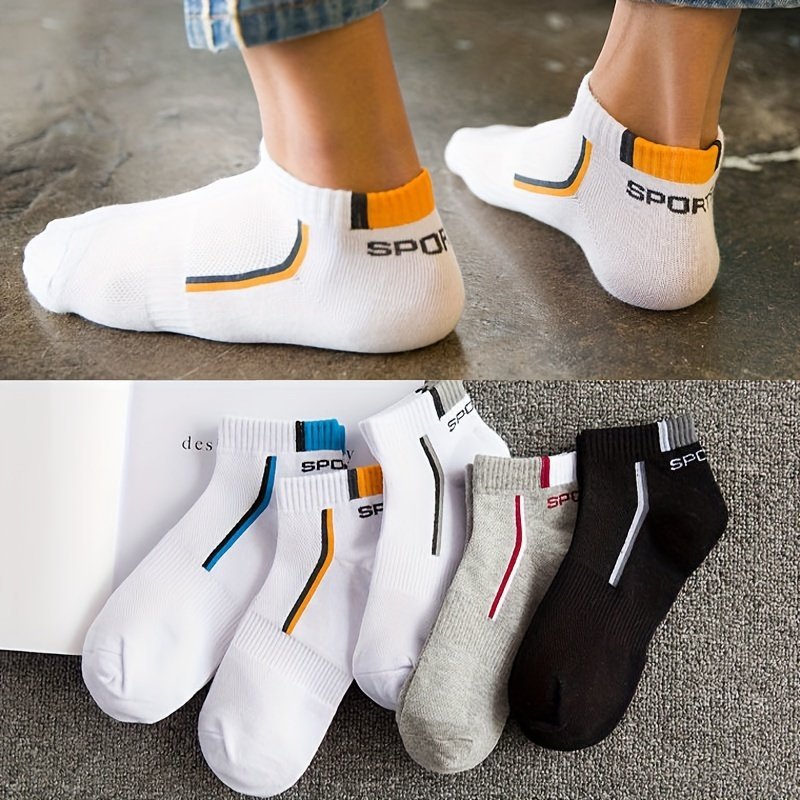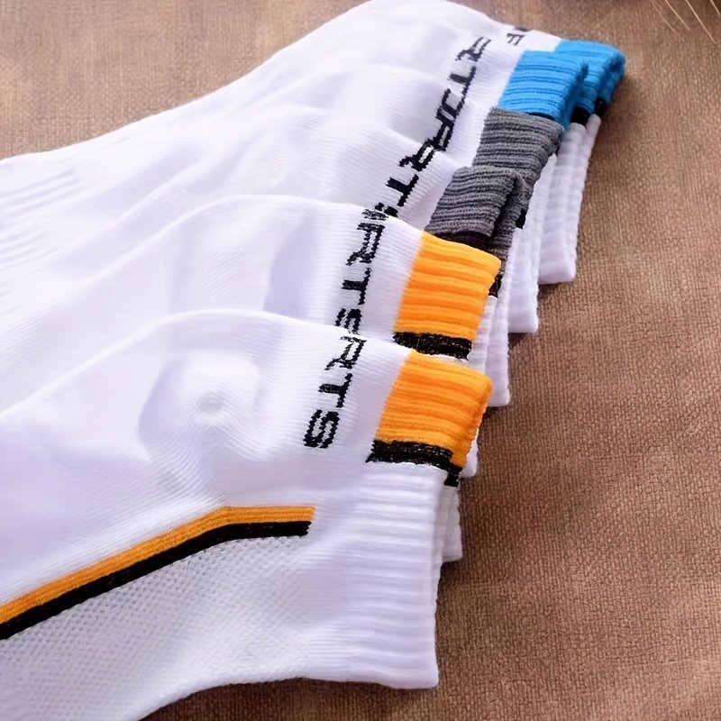 5-Pack Men’S Low-Cut Athletic No-Show Socks – Breathable Moisture-Wicking Ankle Socks With Arch & Sporty Logo (White/Black) – Thin Cushioned For Gym,, – Multi-Color Options – Bulk Discount
