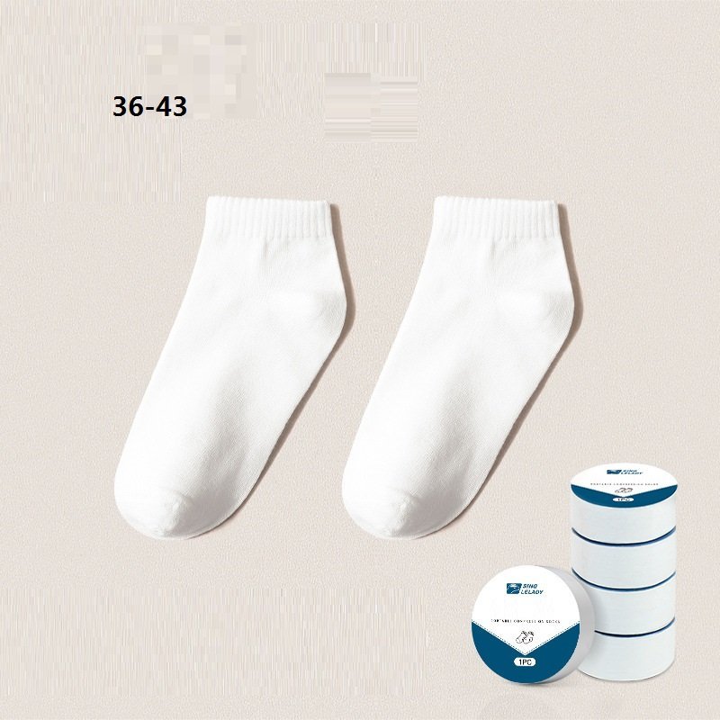 5 Pairs Disposable Travel Socks, Breathable Compression, Medium & Short Length, Solid Color, Polyester 80%, Spandex 20%, Knit Fabric, Portable For Travel