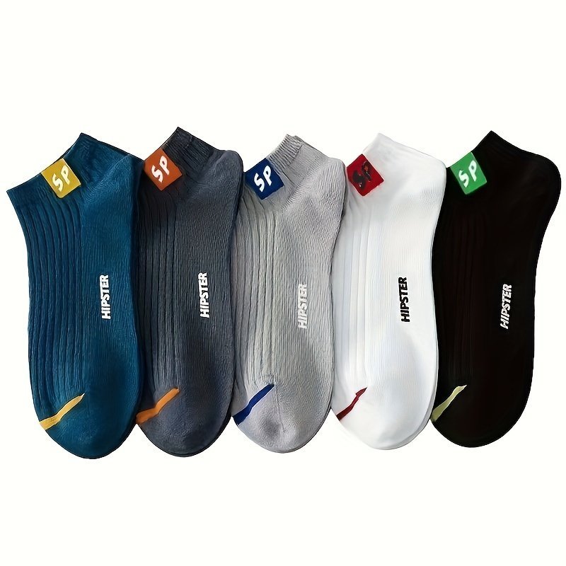 5 Pairs ‘Sp’ Print Fashion Sports Socks, Comfortable Low Cut Ankle Socks For Men Women