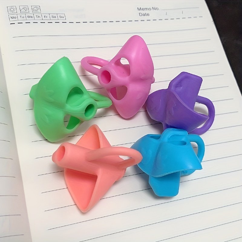 5Pcs Student Pencil Holder Corrector Set For Kindergarten Primary School Students Writing Corrector Soft Rubber Writing Posture Pencil Holder, Handwriting Correction, Comfortable Grip, Childfriendly Design, Smooth Texture, Nonslip Holder