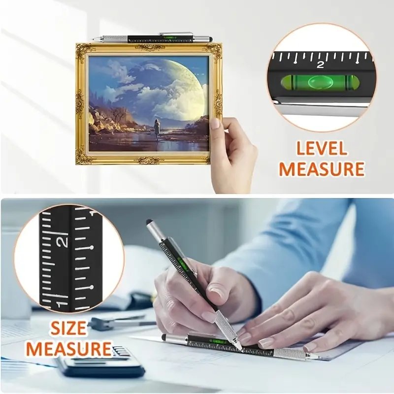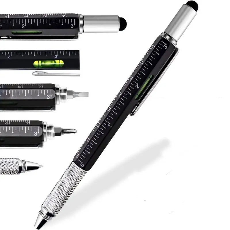 6-In-1 Multifunctional Tool Pen Building Tools, Gift Tool Pens, With 1.0Mm Black Round Ballpoint Pen, Ruler, Handwriting Pen, Level, Screwdriver, Fountain Pen Tools Gadget Fountain Pen Gifts For Men Christmas Gifts Dad Gifts,Christmas,Birthday,Teacher