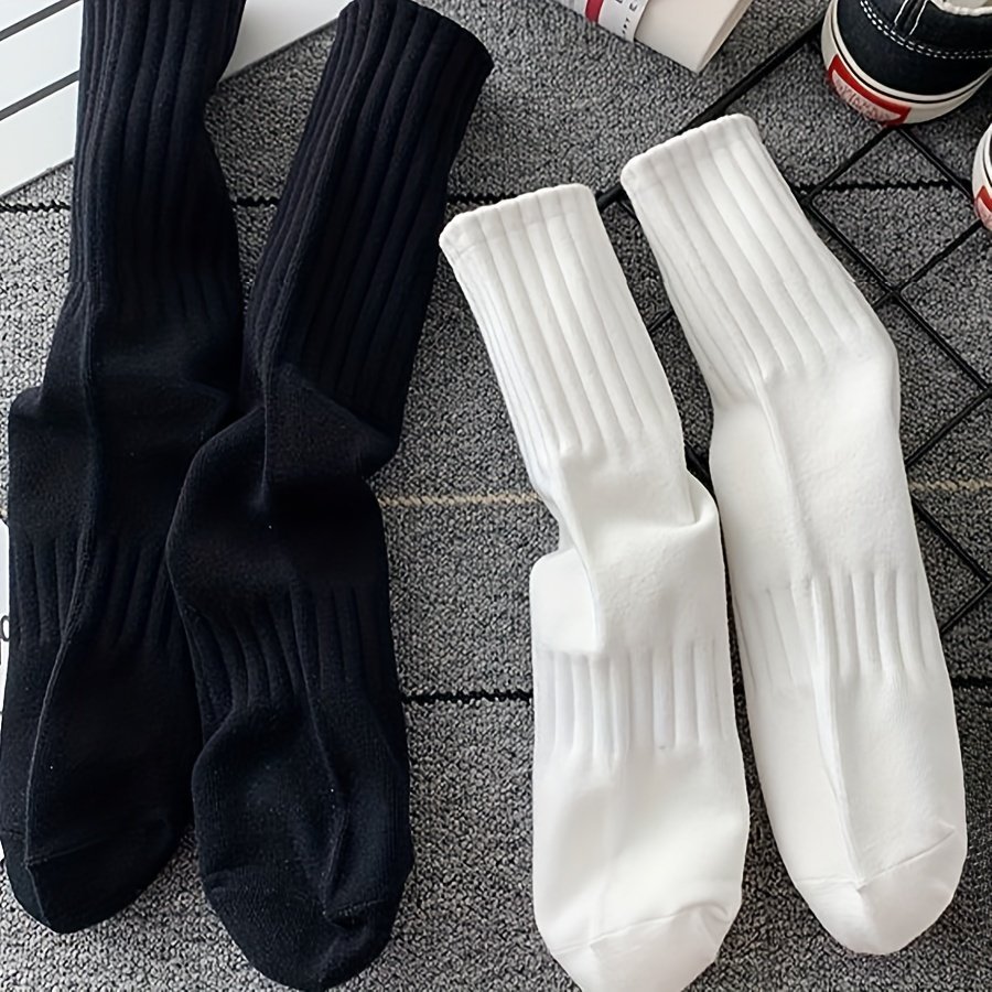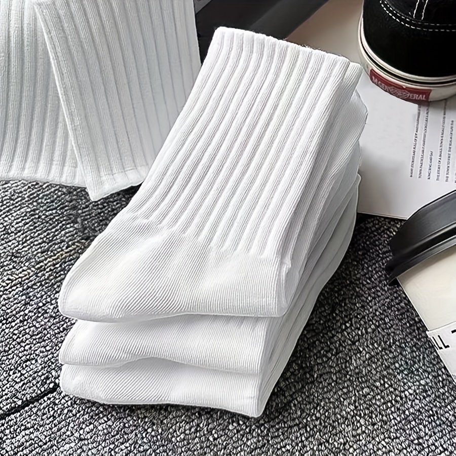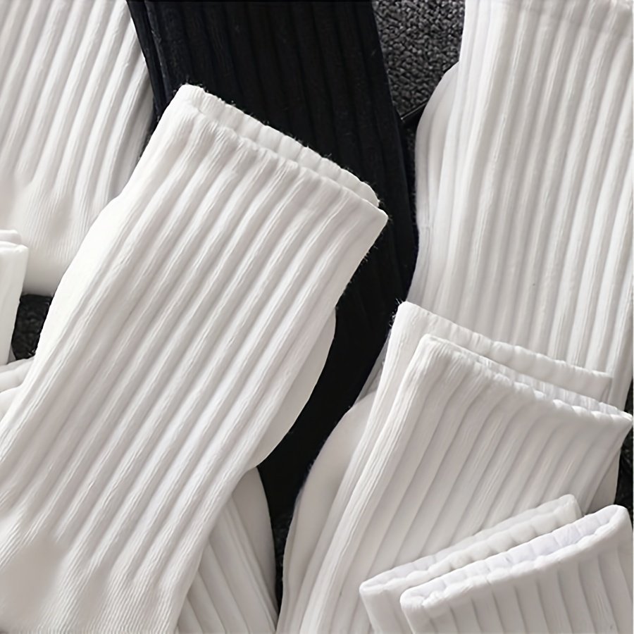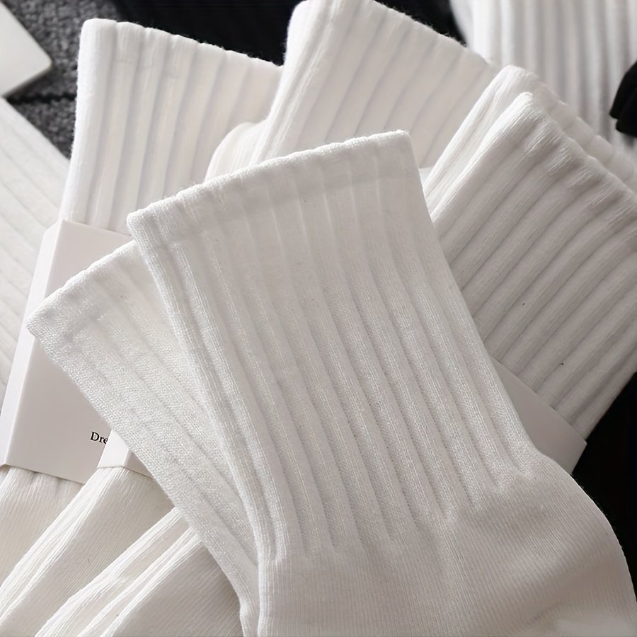 6 Pairs Solid Ribbed Socks, Comfy & Breathable Mid Tube Socks, Women’S Stockings & Hosiery
