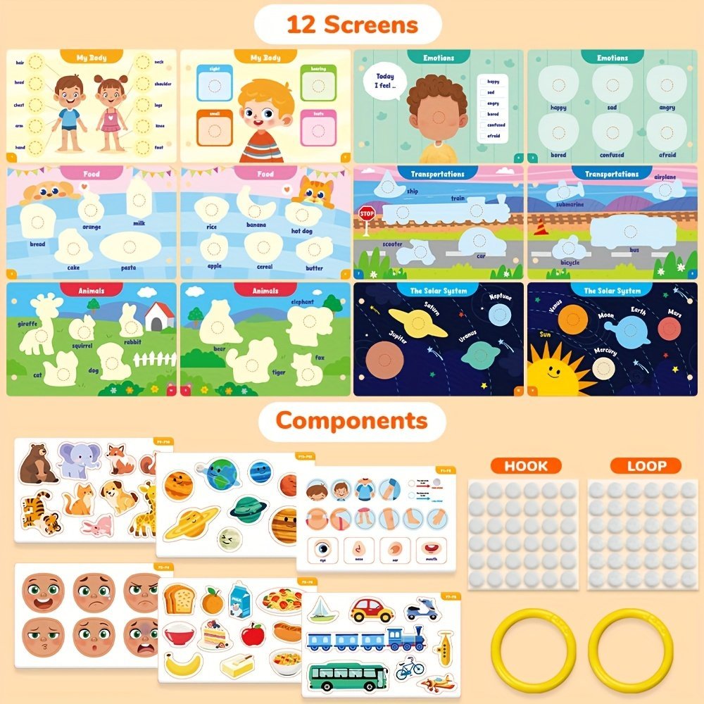 6 Themes Busy Book With, Cardboard, Educational Learning Toys For Cognitive And Thinking Abilities, Body, Animals, Food, Planet, Traffic, Emotion, Parent- Christmas Gift, Family Game, Travel, Bedtime Activities, Cognitive Development, Interactive Book, Colorful Pages, Highquality Print, Sturdy Binding, Educational Gift, Busy Board, Parents And Teachers, And