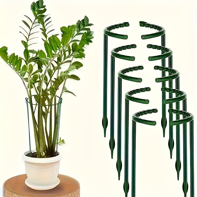 8Pcs/Set (4 Curved Rods + 4 Straight Rods), 9.84-Inch Plastic Plant Support Stake Ring, Suitable For Greenhouse Garden, Semi-Circular Fixed Rod For Indoor Flowers And Climbing Plants, Flexible And Adjustable Bonsai Tool, Easy To Fix Height