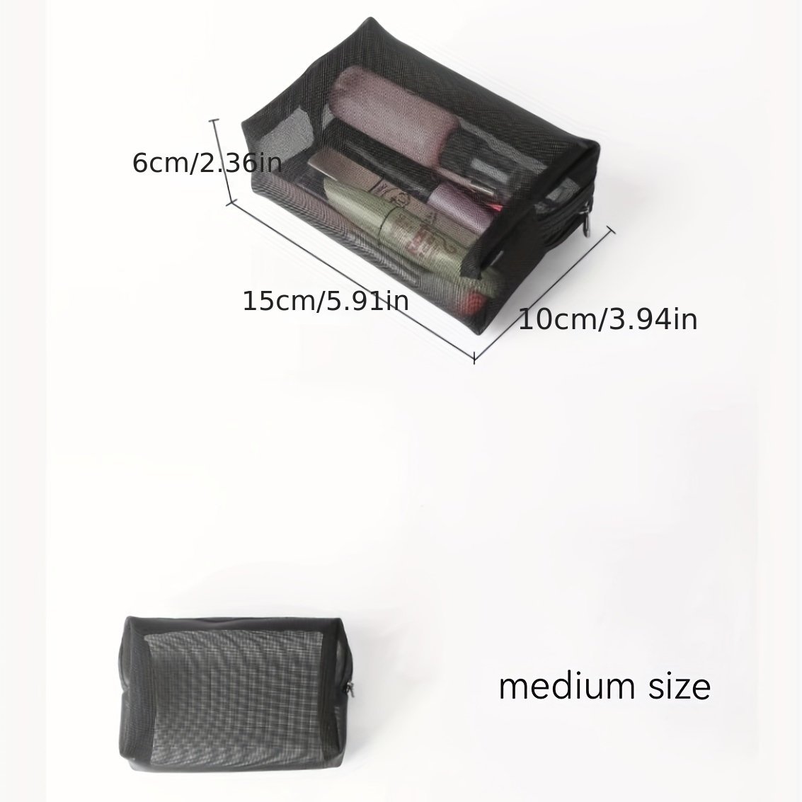 A Compact Three-Piece Set Of Nylon Mesh Makeup Bags, Portable, Large Capacity, Travel Cosmetic Storage.