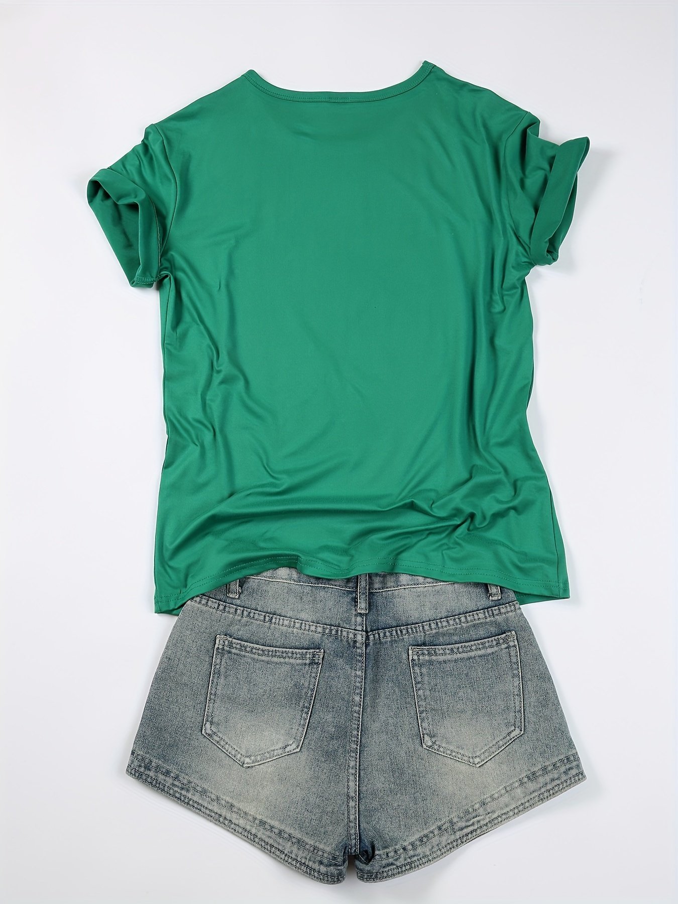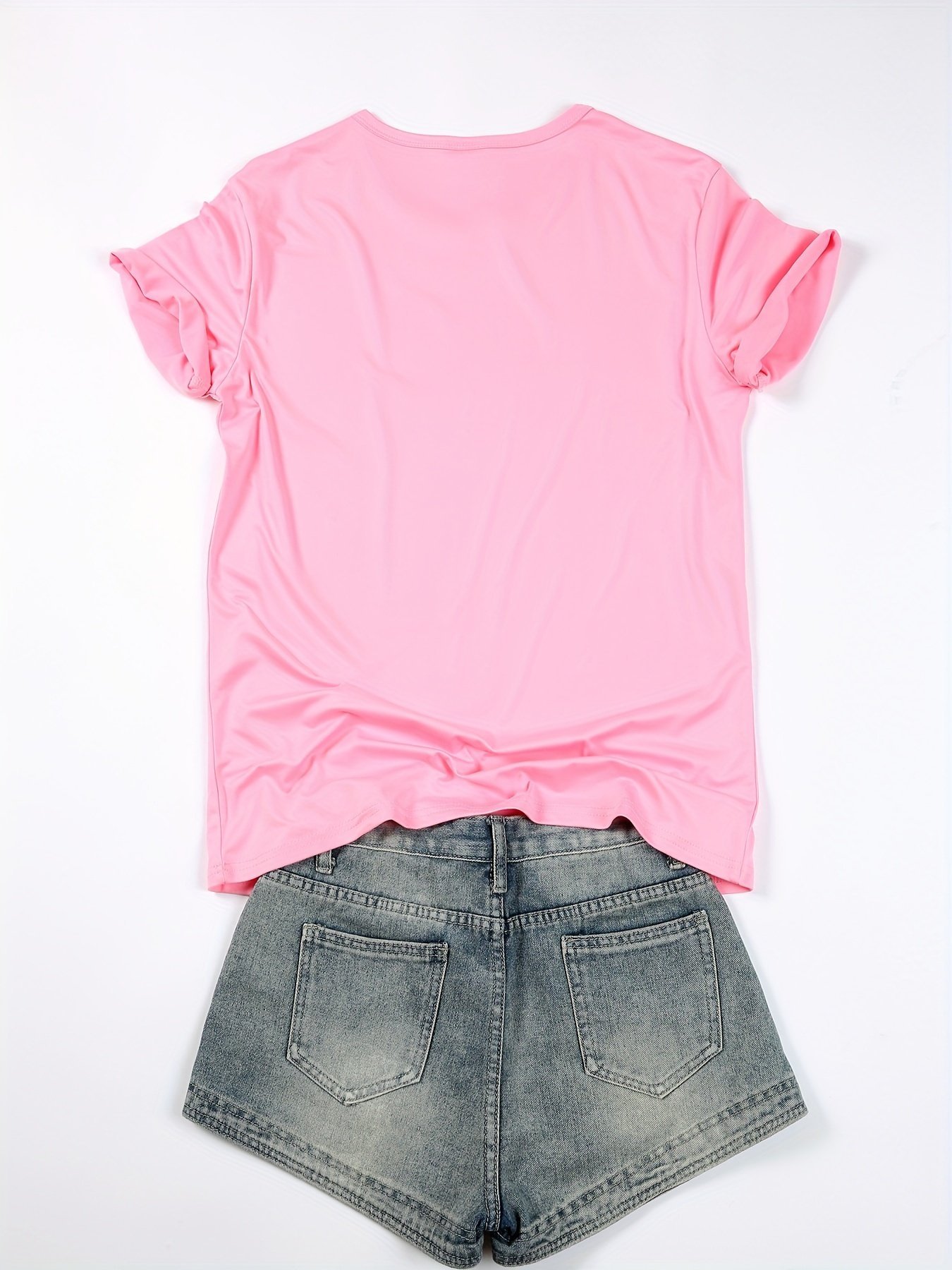 2Pcs Summer Short Sleeved Women Splicing Simple Short Top Slimming Elastic T -Shirt Women